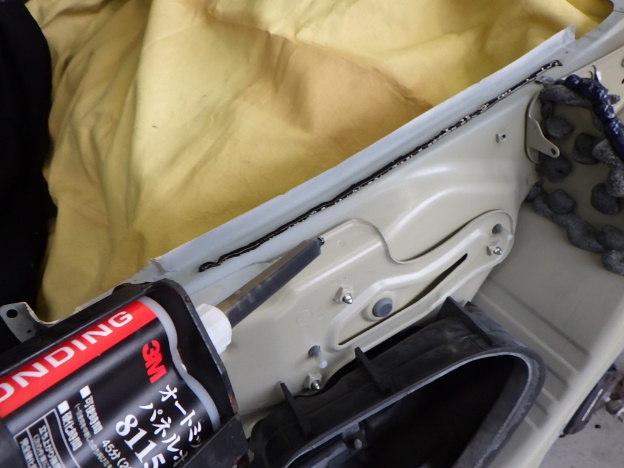 プライマー乾燥の後、溶接箇所、修正箇所にパテ付け作業を行いました。