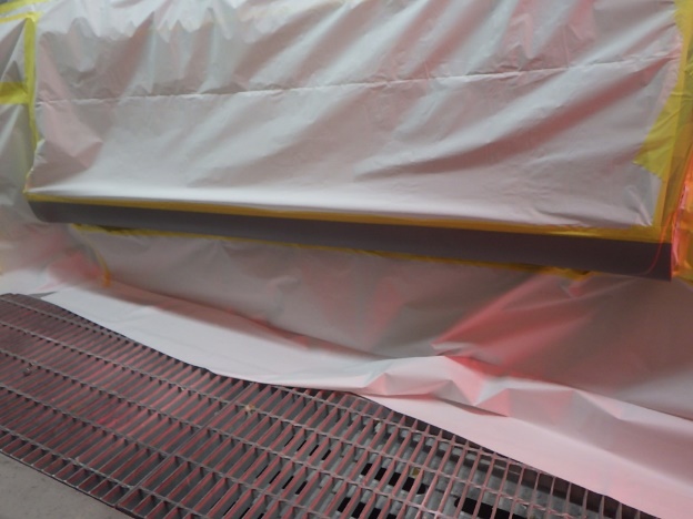 塗装作業を行う為、足付け作業、マスキング作業、脱脂作業、エアブローを行い、