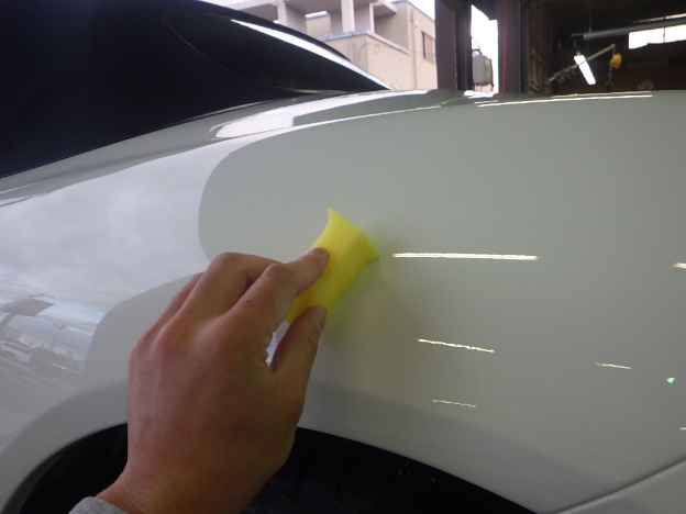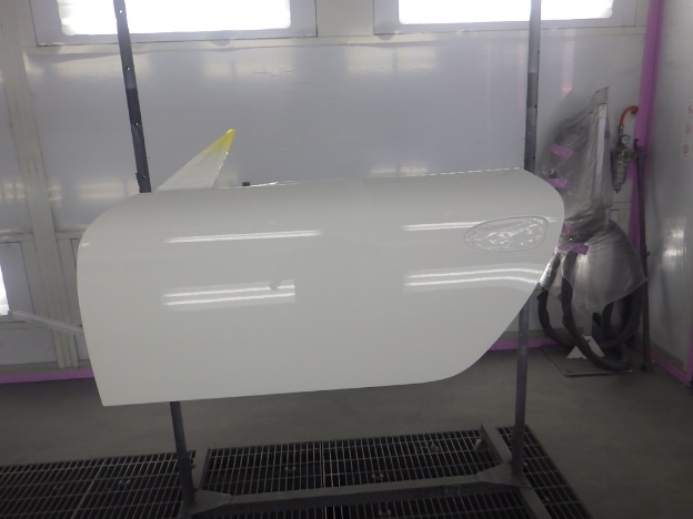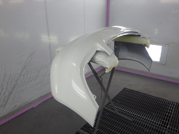 ベースコート(白)、トップコート(クリヤー)の順に塗装作業を行いました。