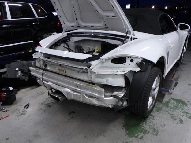 左側面、リア廻り損傷での入庫になります。