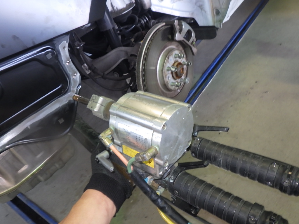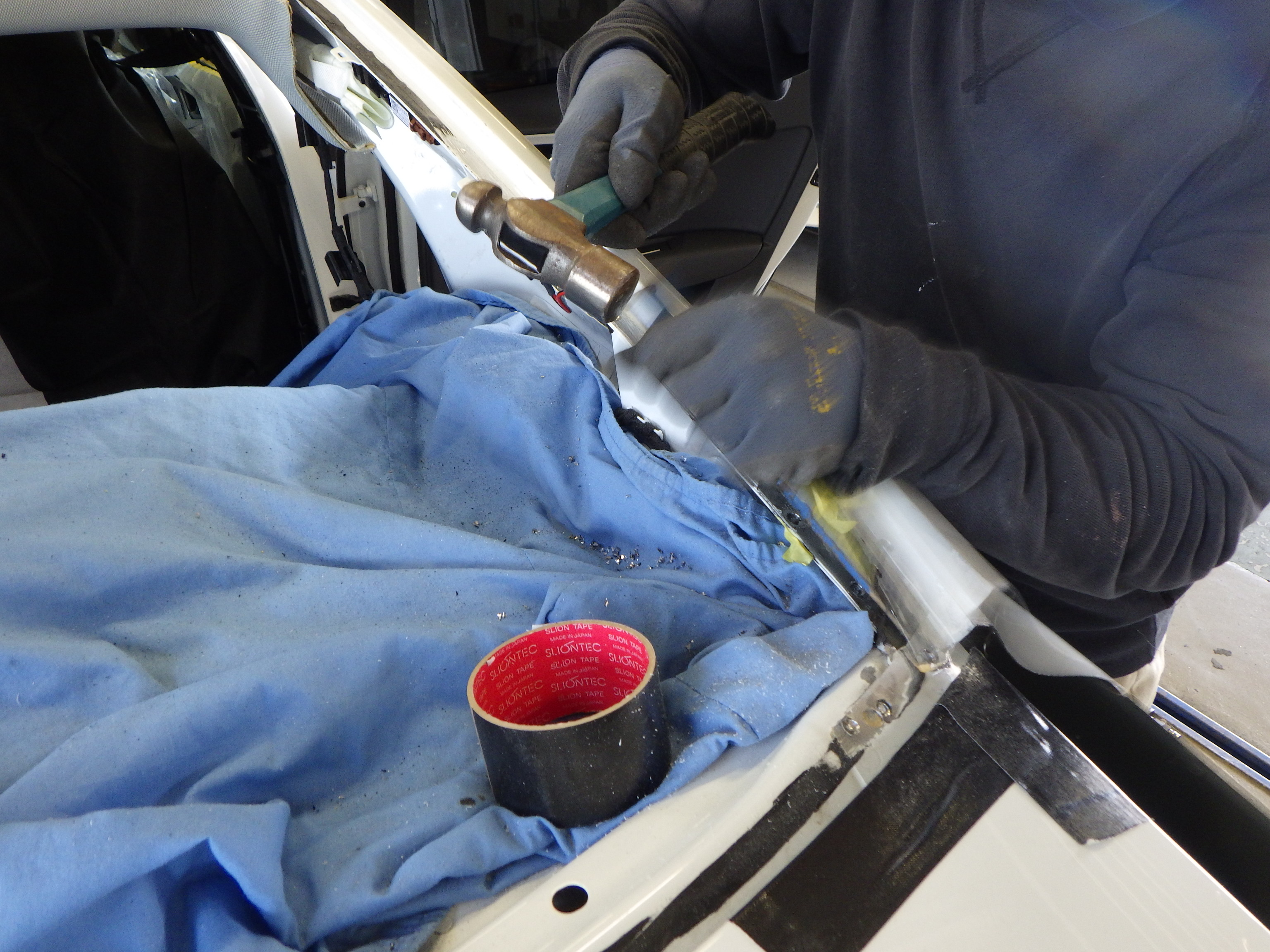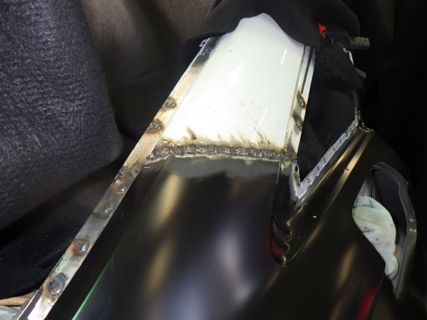溶接作業の後、削り作業、脱脂作業、エアブローを行い、パテ付け作業を行いました。