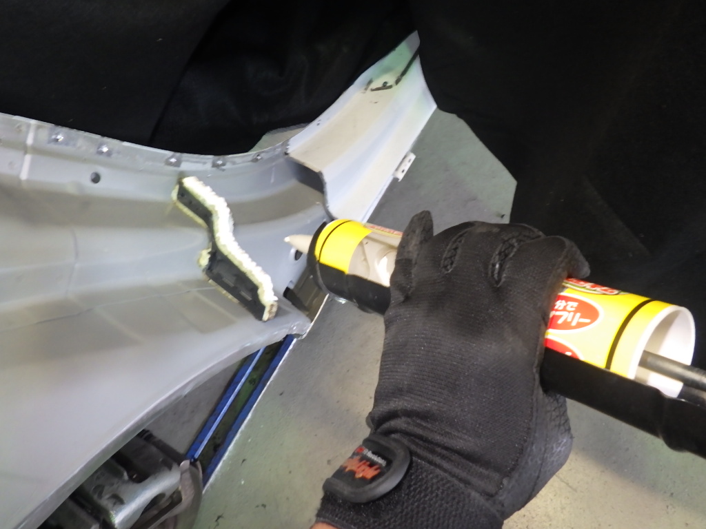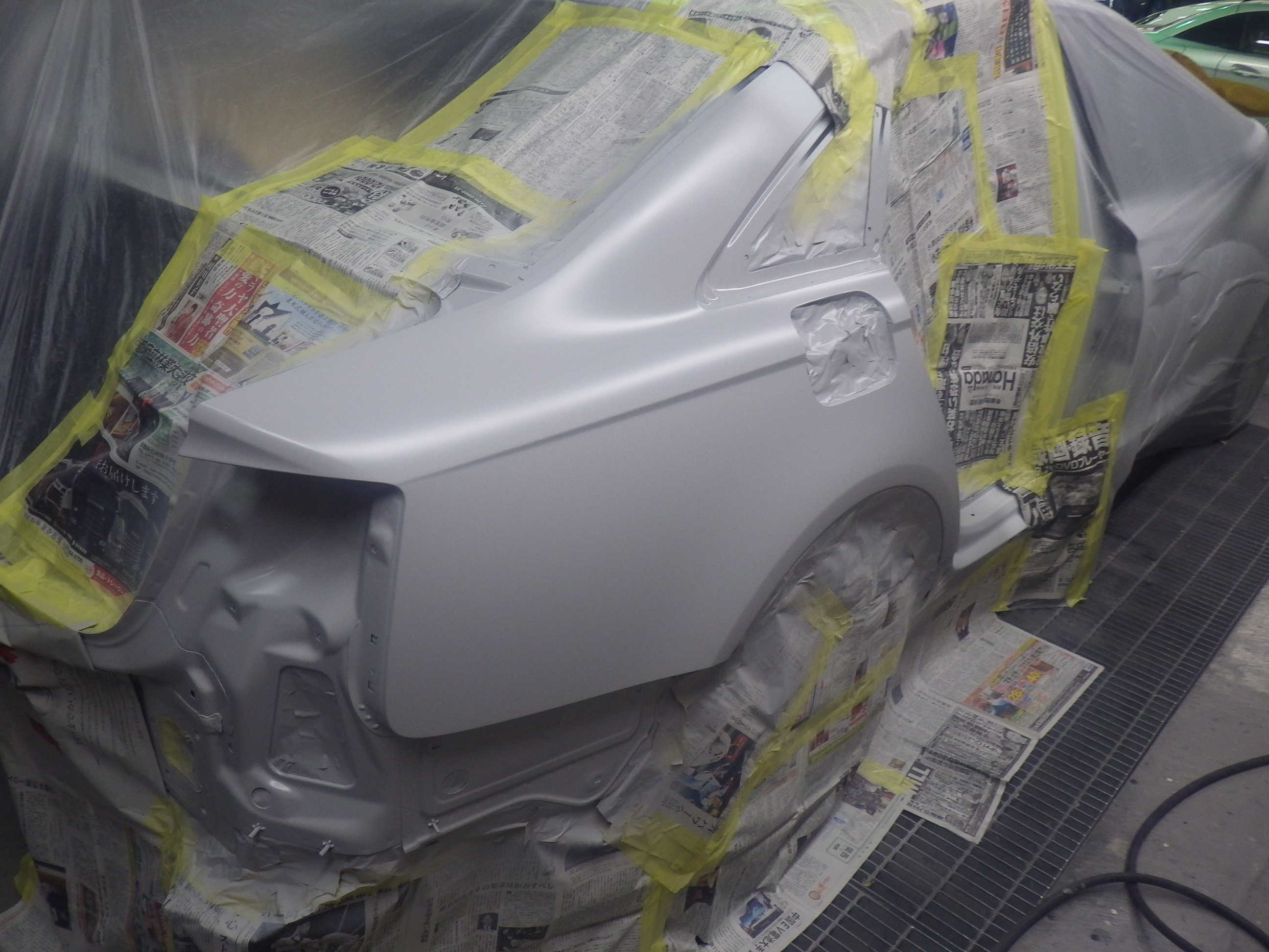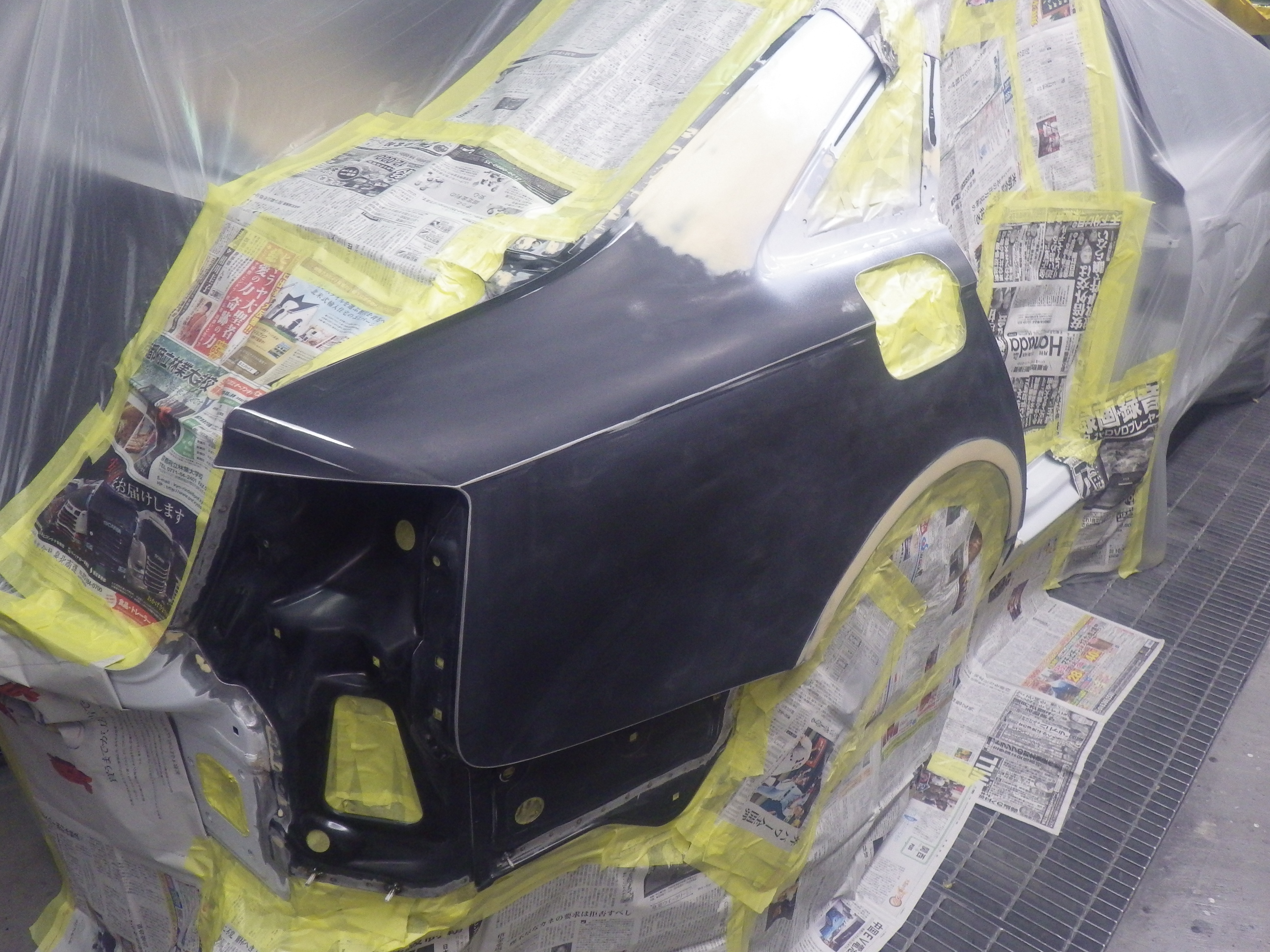 シーラーの貼り付け作業を行い、サフェーサーの塗装作業を行いました。