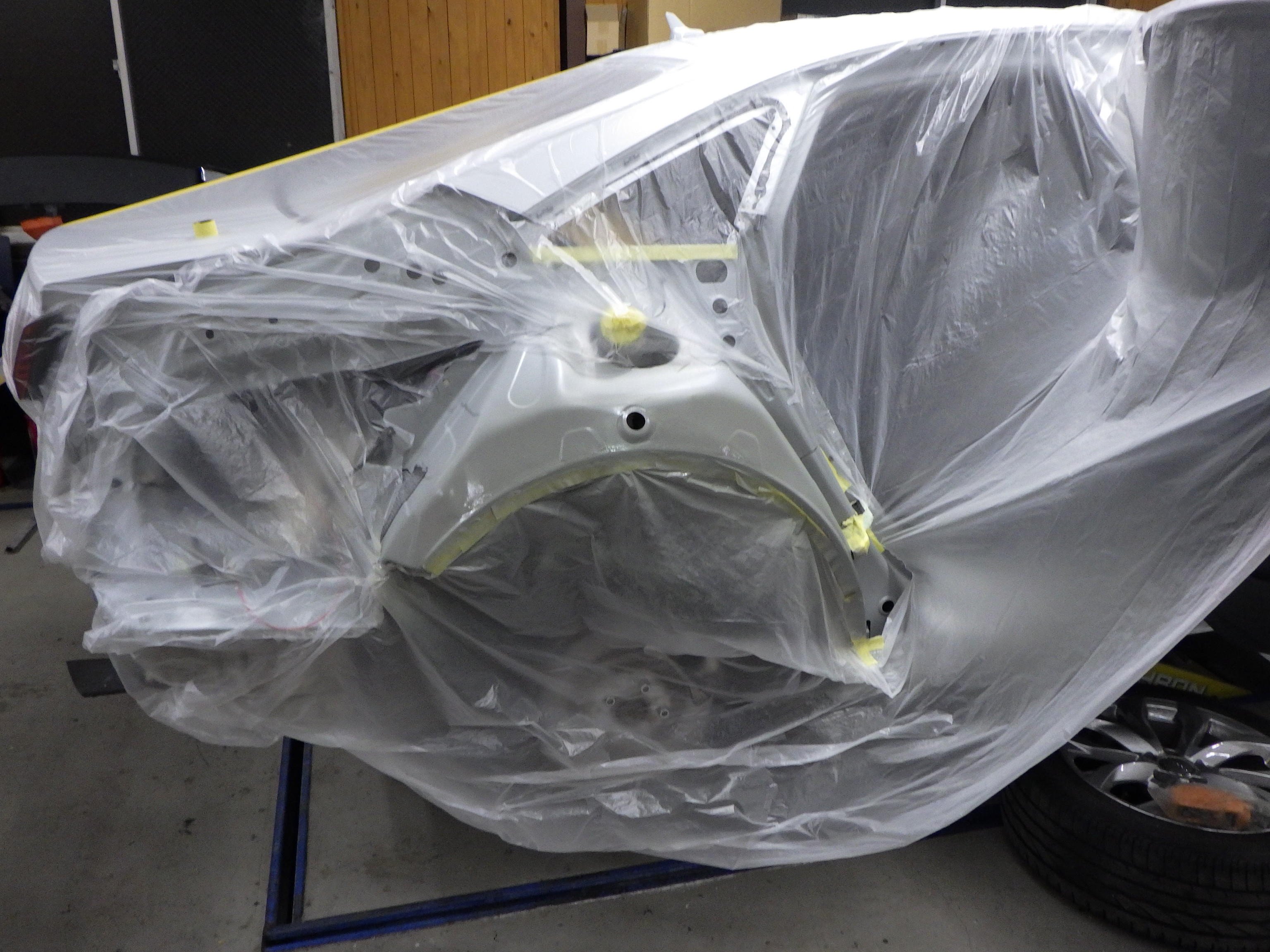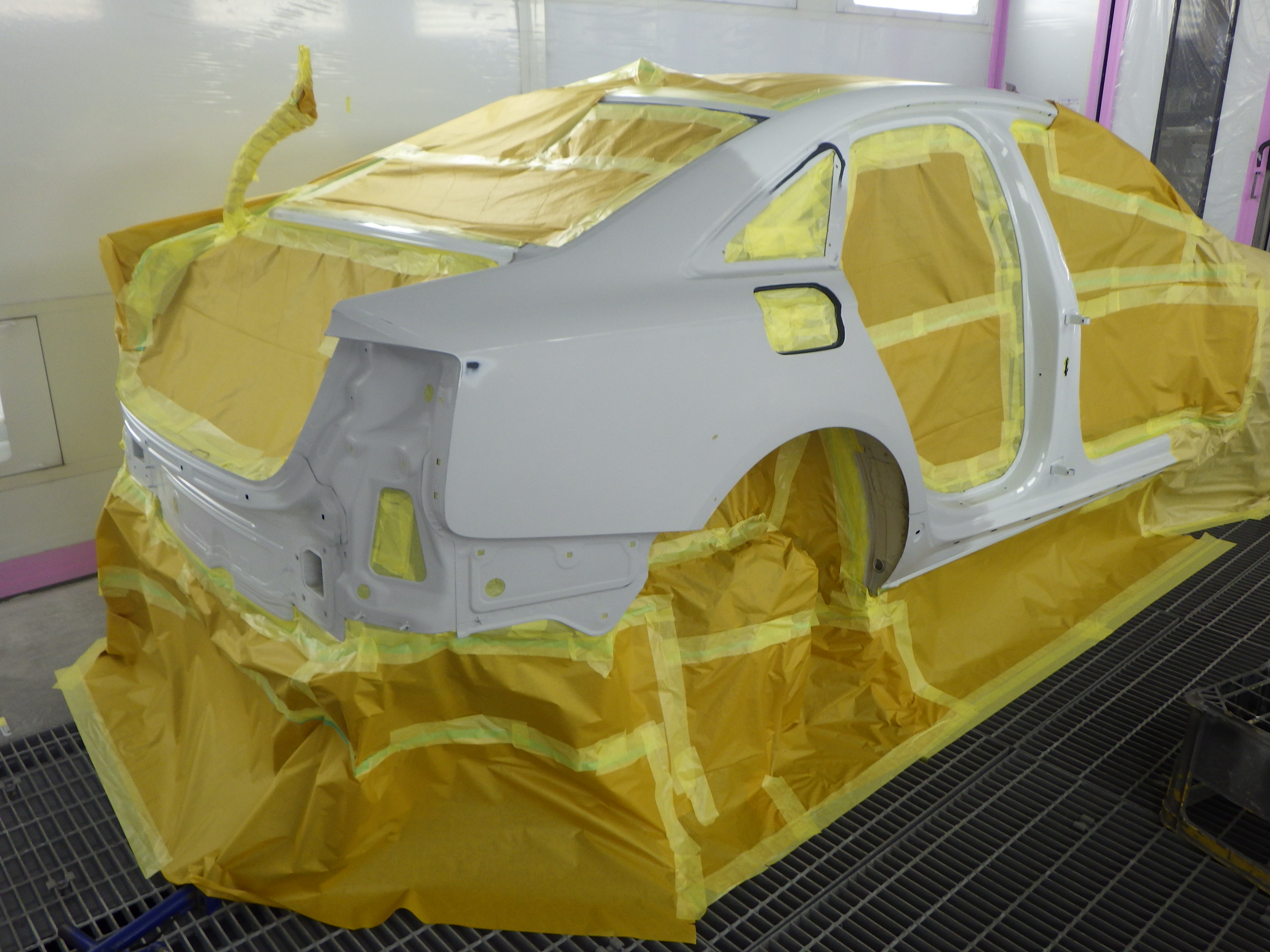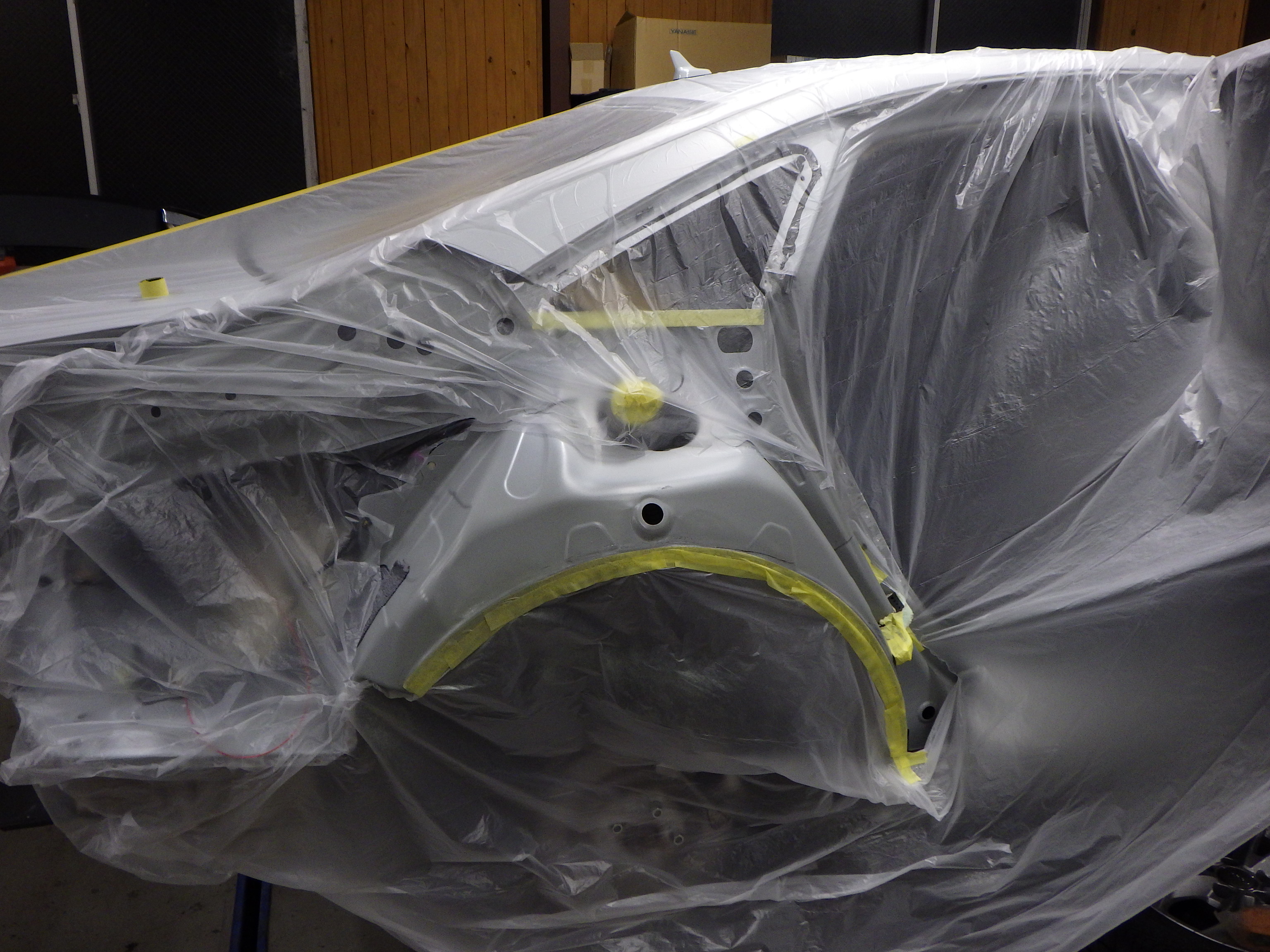 シーラーの貼り付け作業を行い、サフェーサーの塗装作業を行いました。