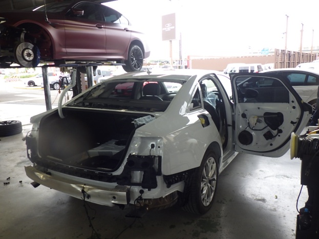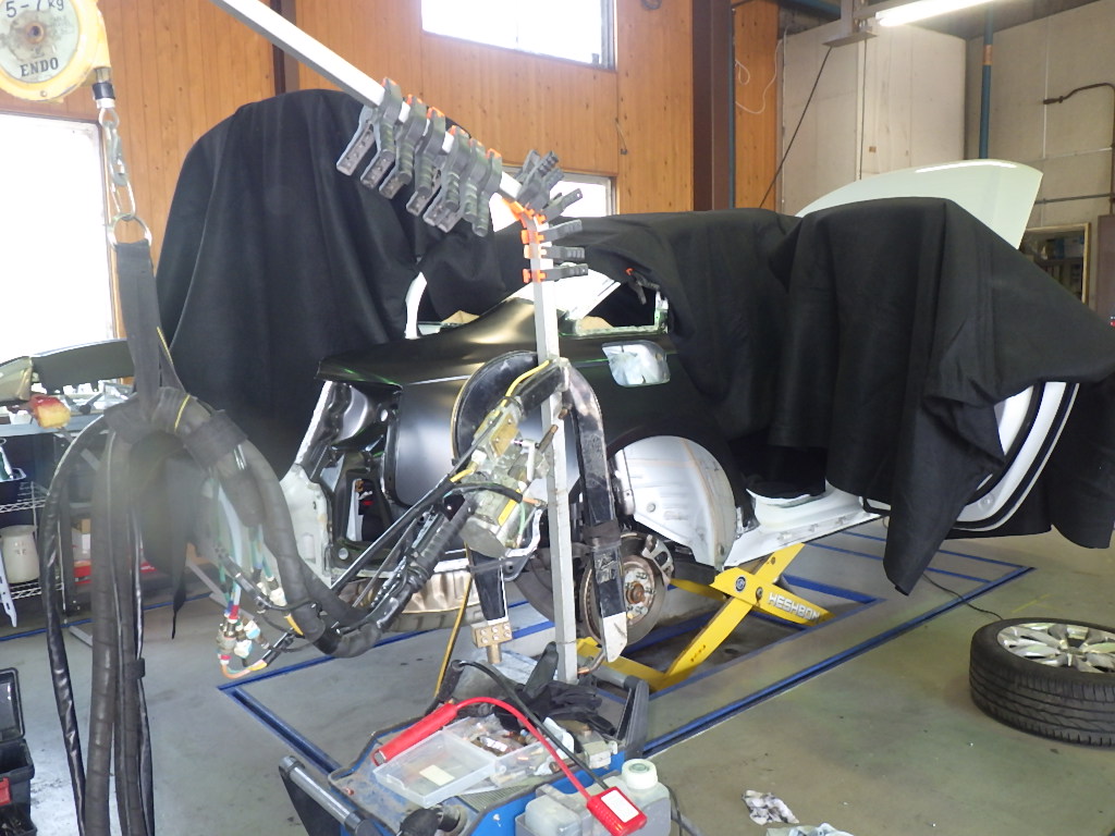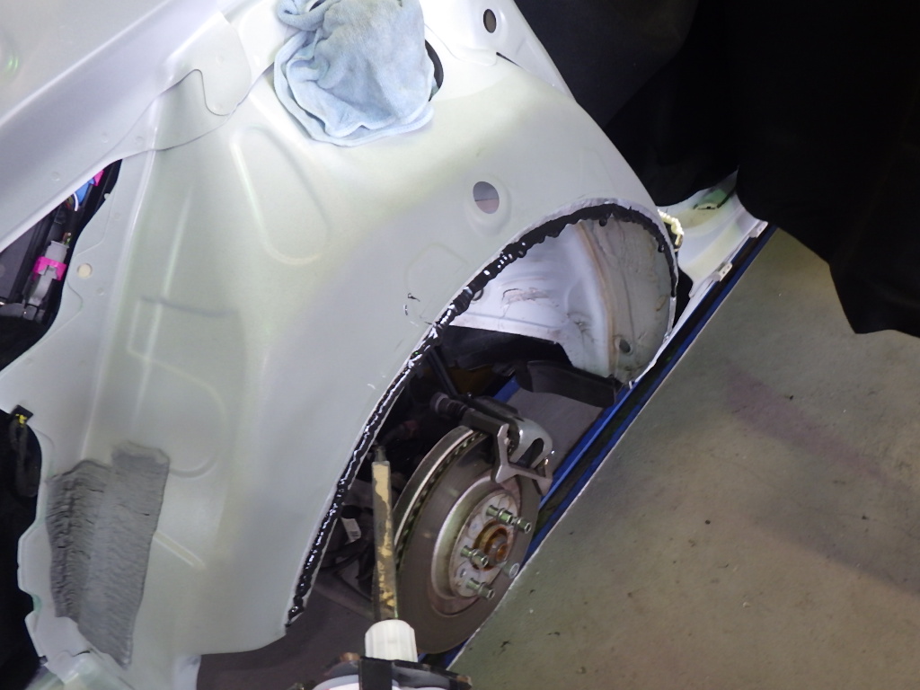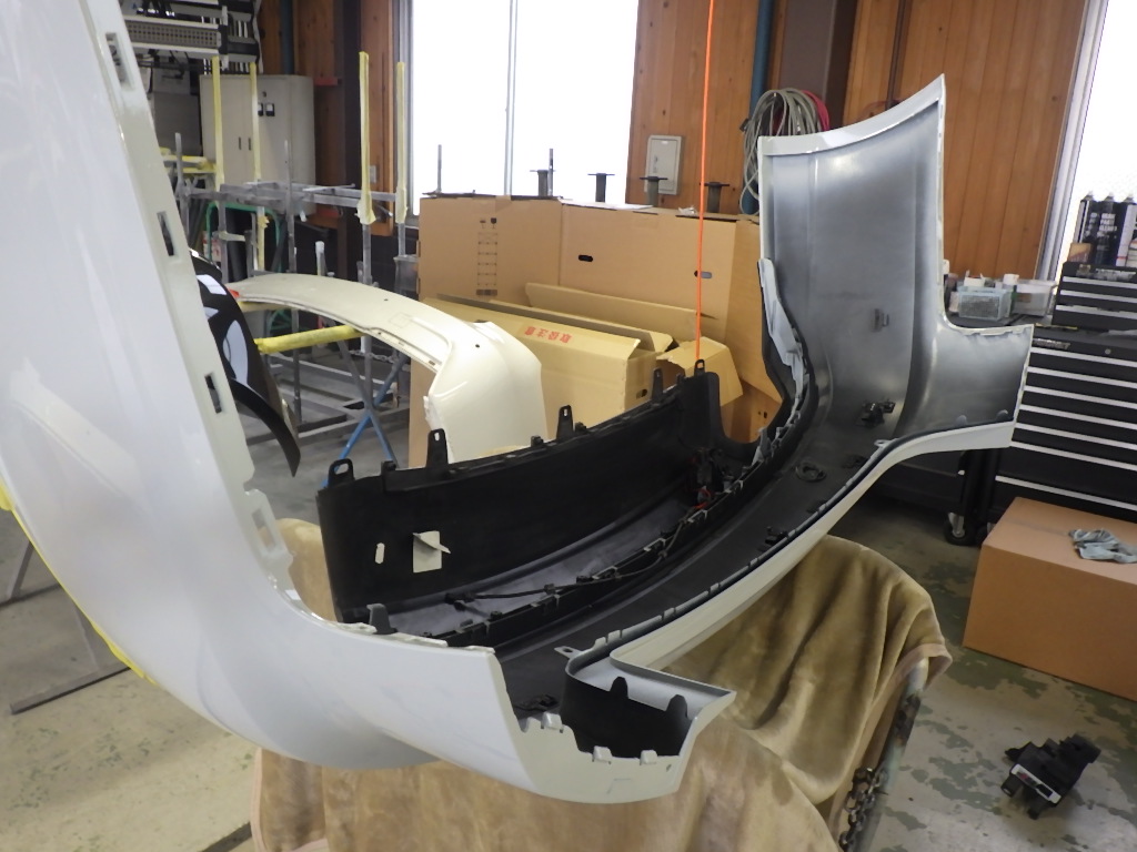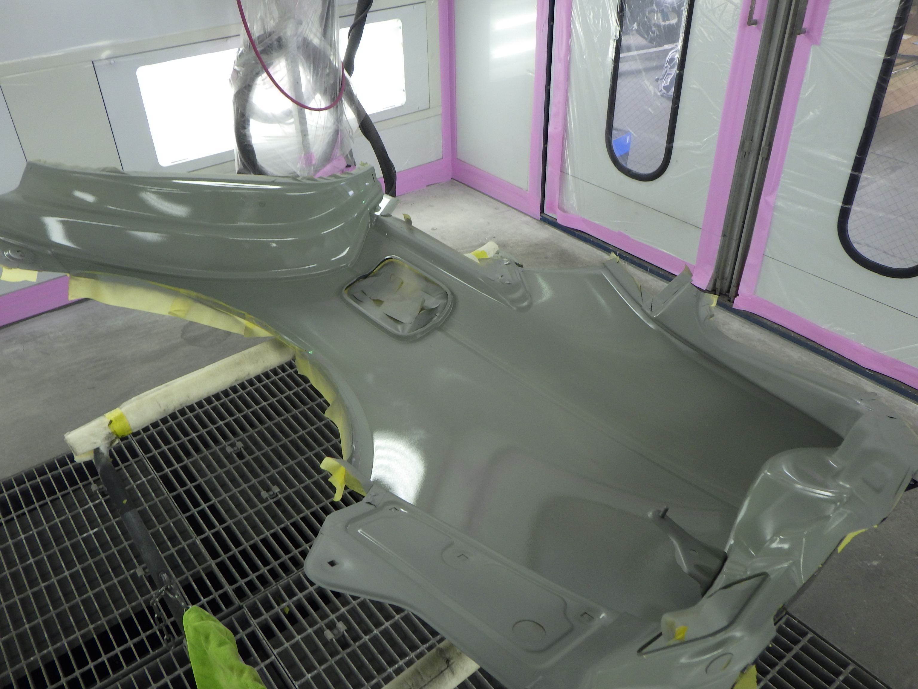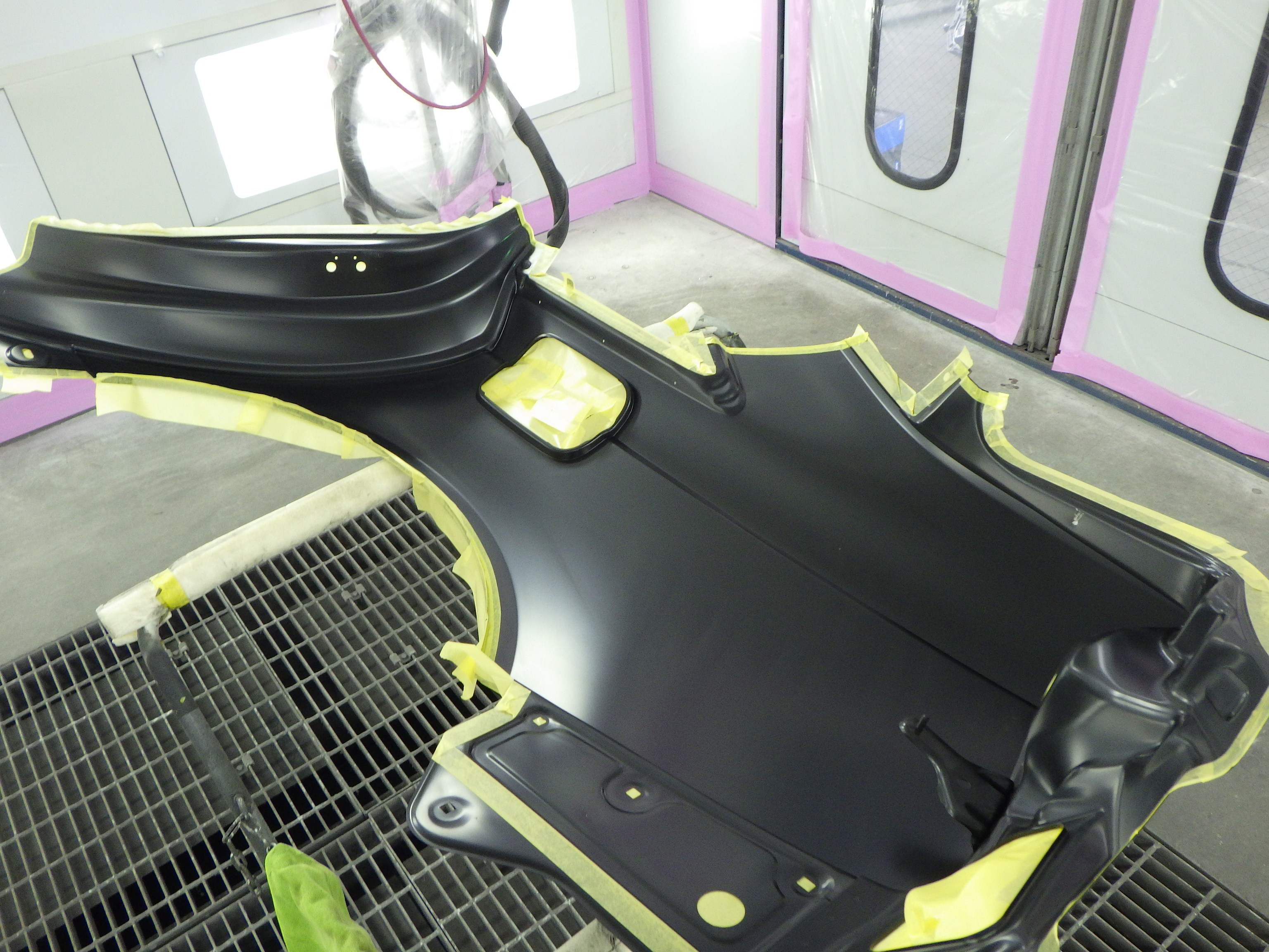 切り離し作業の後、インナーパネルの修正、塗装作業を行いました。