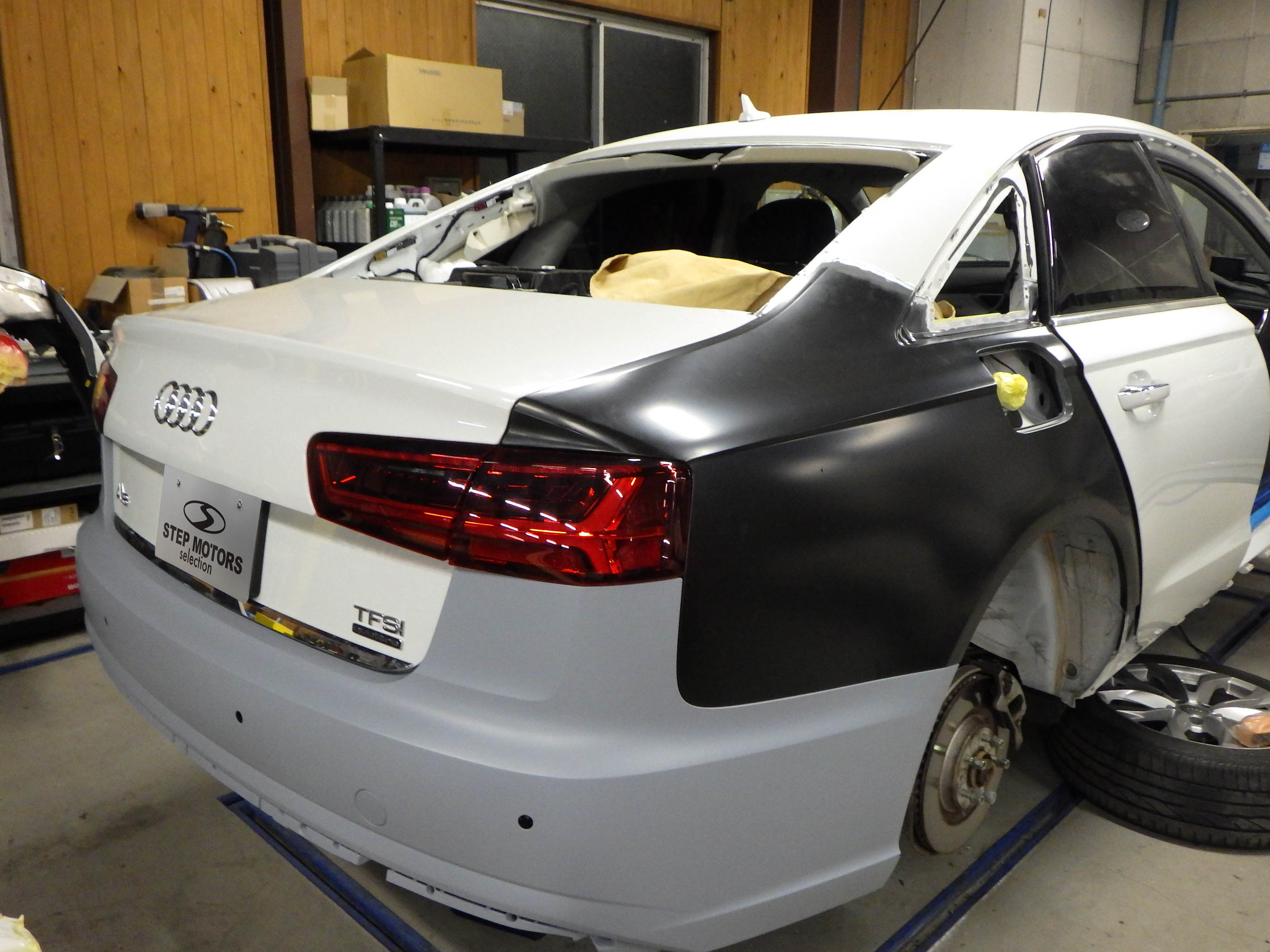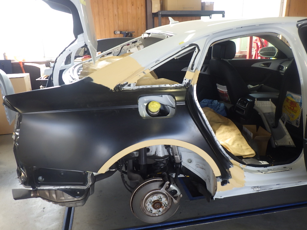 【板金塗装】兵庫県西脇市、S様、2016y、Audi、A6、右リア周り修理のレポートです!御入庫有難うございました。m(__)m