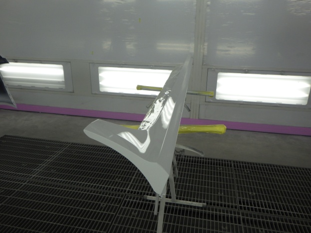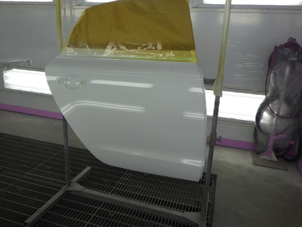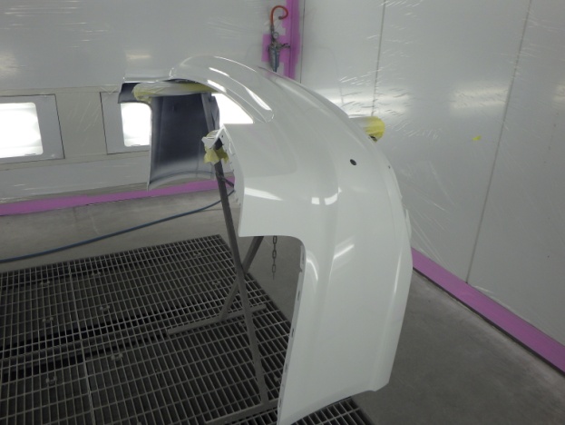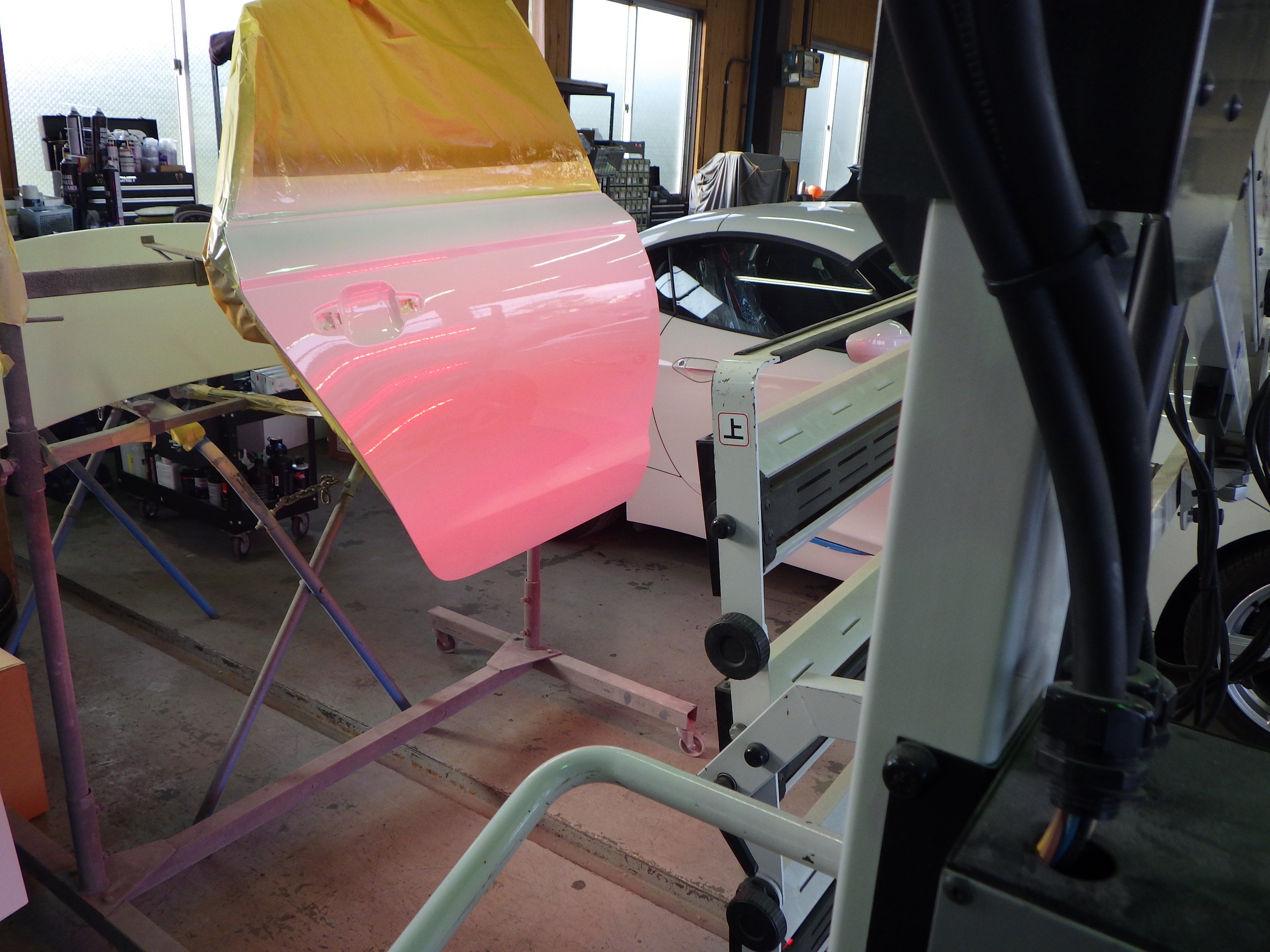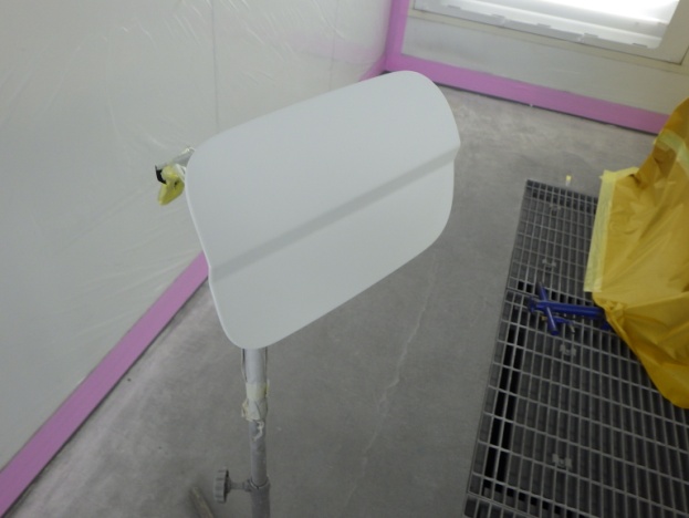 ベースコート(白)、トップコート(クリヤー)の順に塗装作業を行いました。