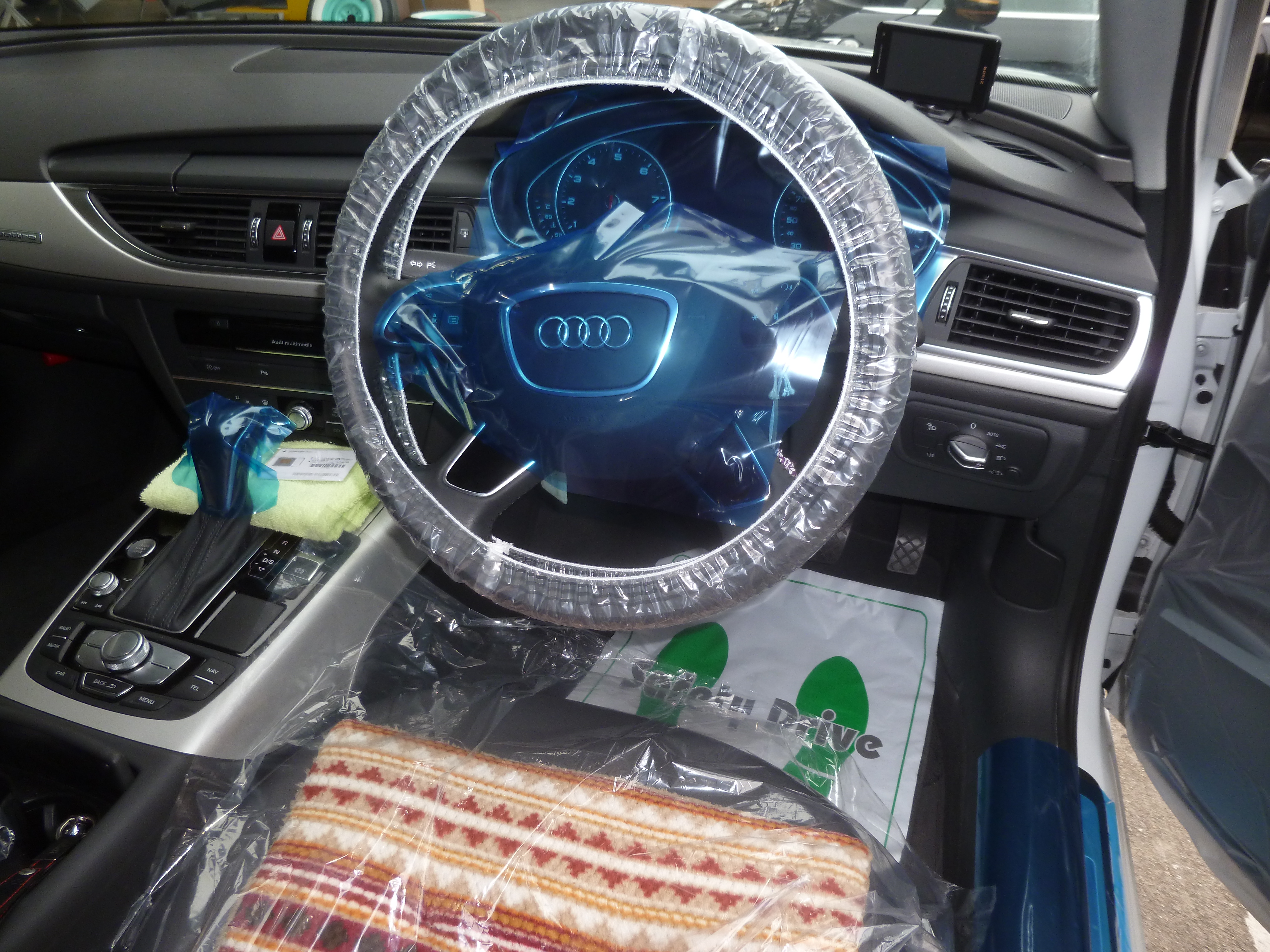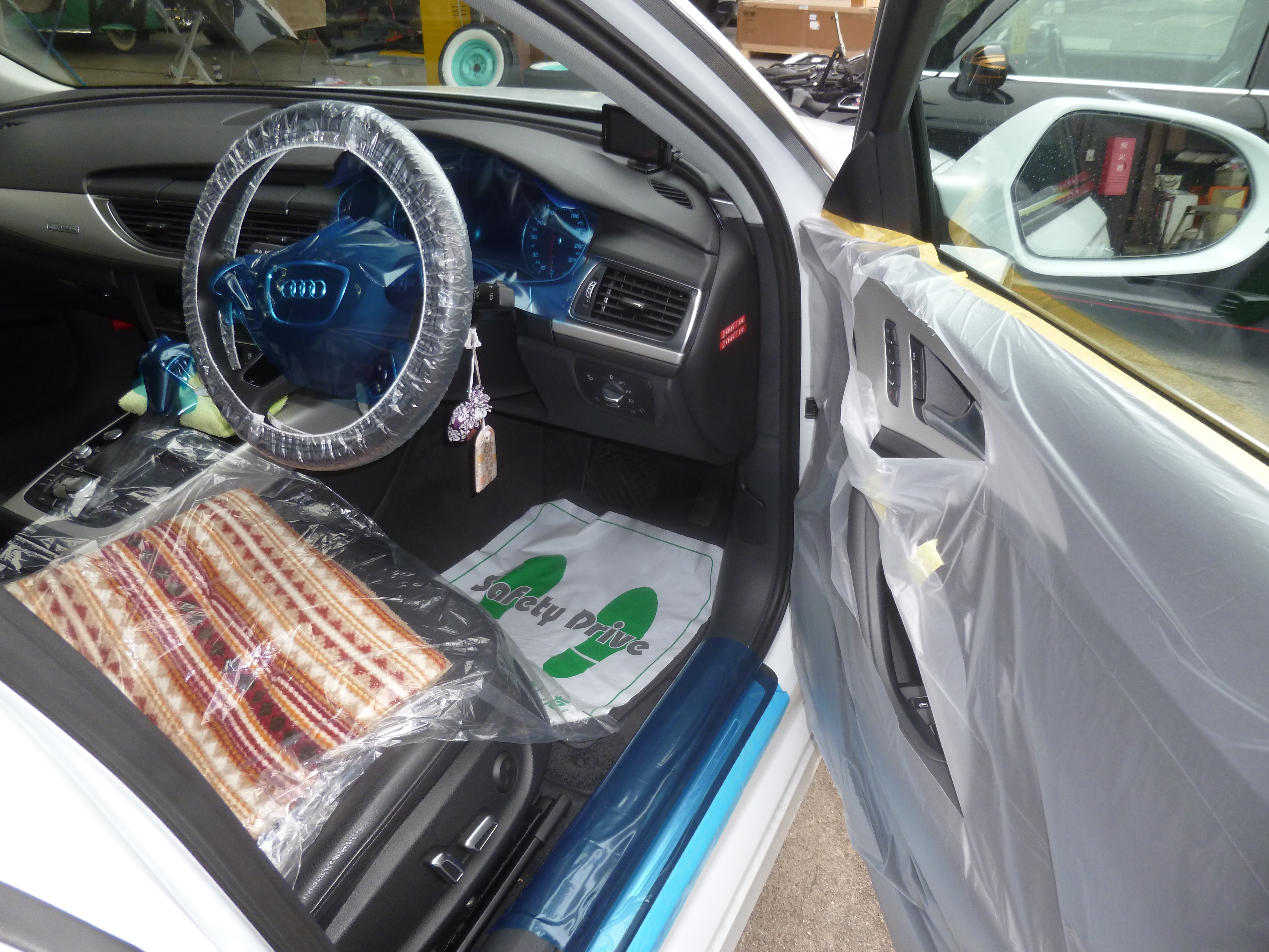 作業前にキズ、汚れ防止の為、シートカバー、ハンドルカバー、
