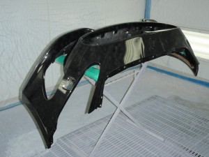フロントバンパーは塗装ブース内の温度を上げて強制乾燥させました。