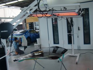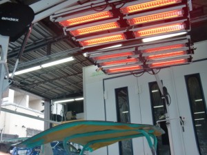 塗装作業完了後、ボンネットを赤外線で強制乾燥させます。