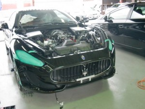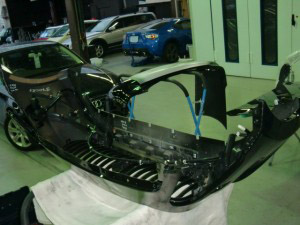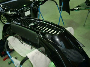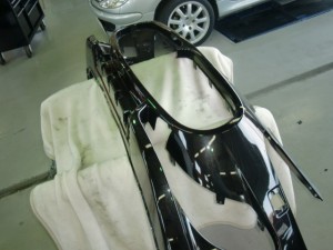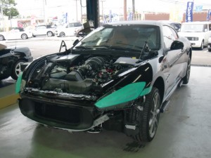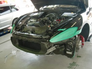 乾燥完了後、フロントバンパーの付属品組み立て、車両本体への組み付け作業を進めていきました。