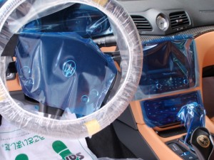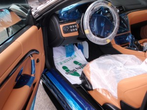 作業に取り掛かる前に、室内のキズ汚れ防止の為に、ハンドル・シートカバー、保護テープの貼り付け作業を行いました。