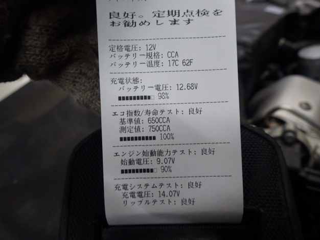 バッテリーはテスターにて診断しましたが異常ありませんでした。