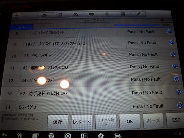 テスターにて各制御系統の診断を行いましたが異常ありませんでした。