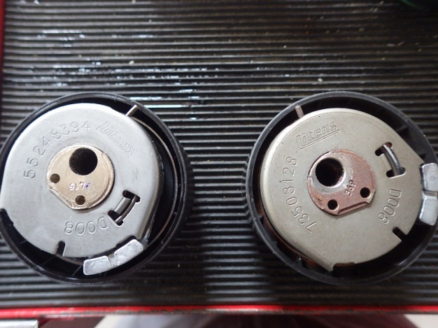 タイミングベルト・テンショナーの交換前と新品の物になります。