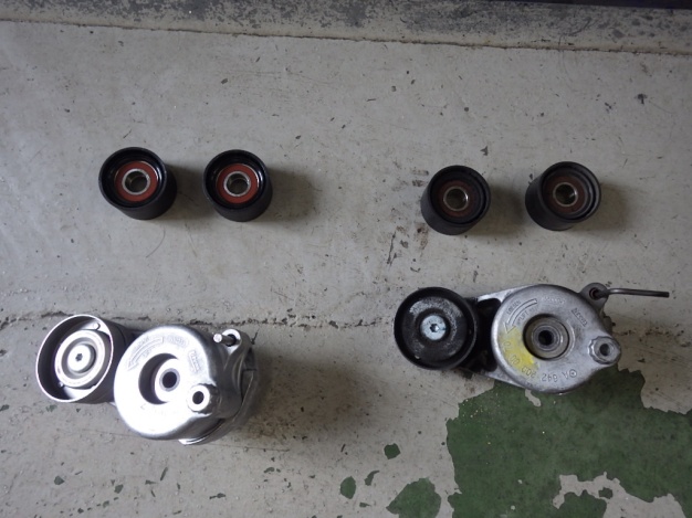 ドライブベルトには亀裂があり、プーリー・テンショナーには少しガタがありました。