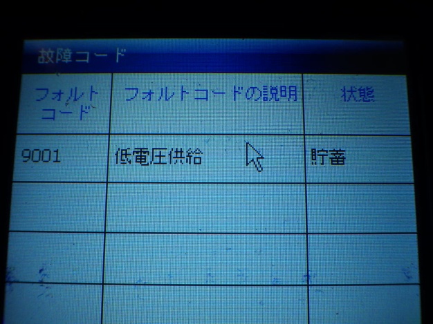 テスターにて各制御系統の診断を行いましたがバッテリー上がりによる故障コードの入力がありました。