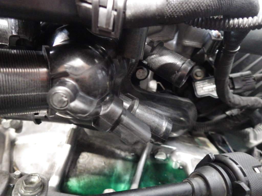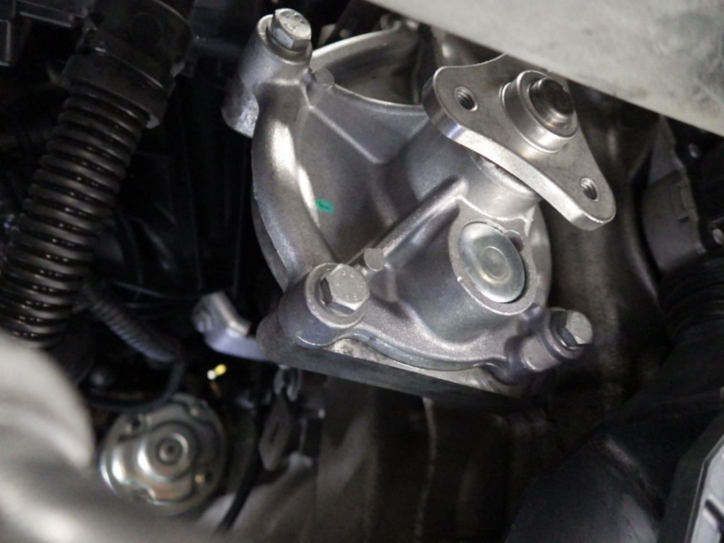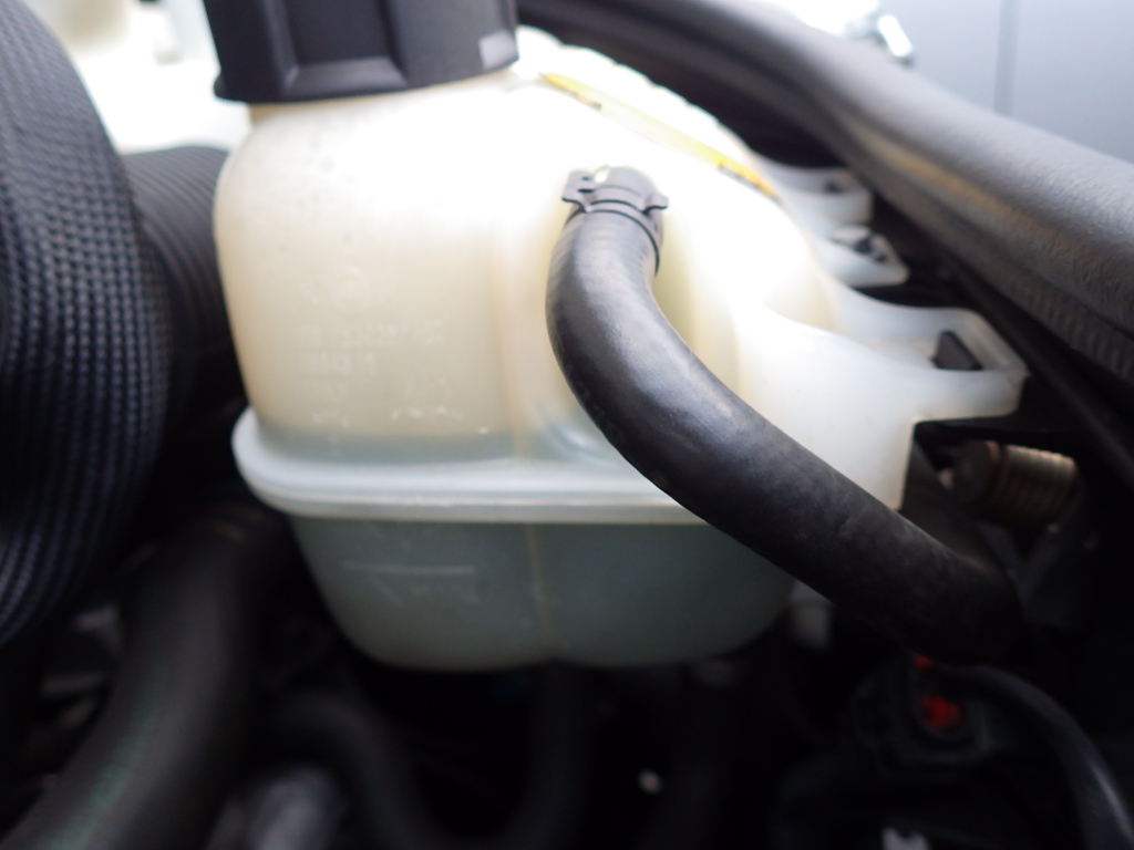組付け後冷却水を補充し、エア抜き作業を行いました。