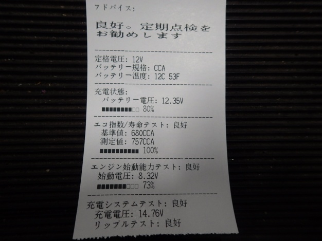 バッテリーはテスターにて診断しましたが異常ありませんでした。