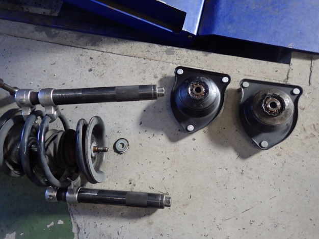 右フロントのアッパーサポートに亀裂が入っていましたので交換しました。