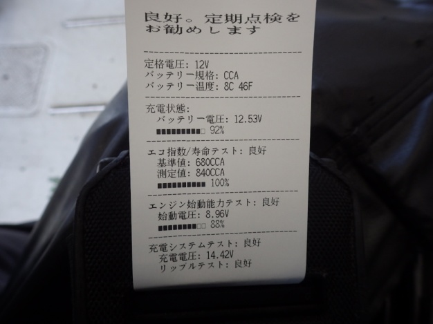 バッテリーはテスターにて診断しましたが異常ありませんでした。