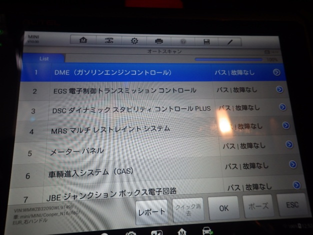 テスターにて各制御系統の診断を行いましたが異常ありませんでした。