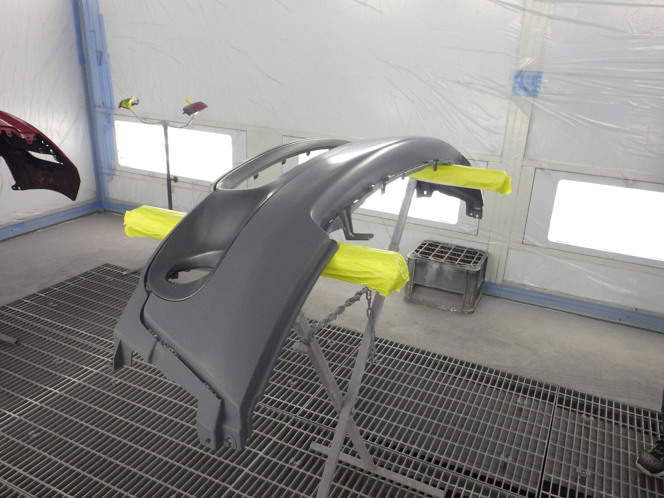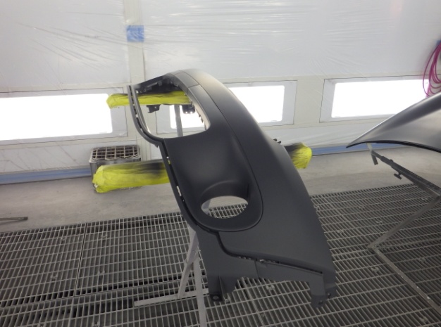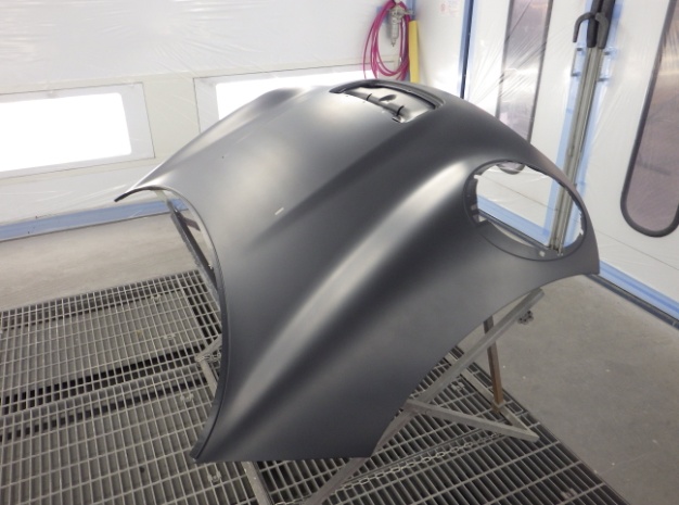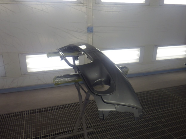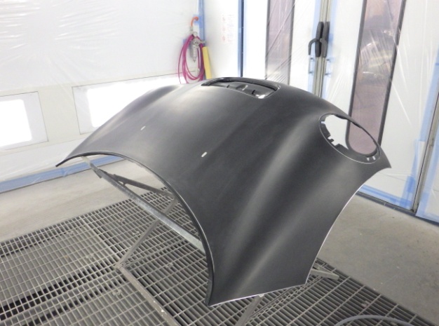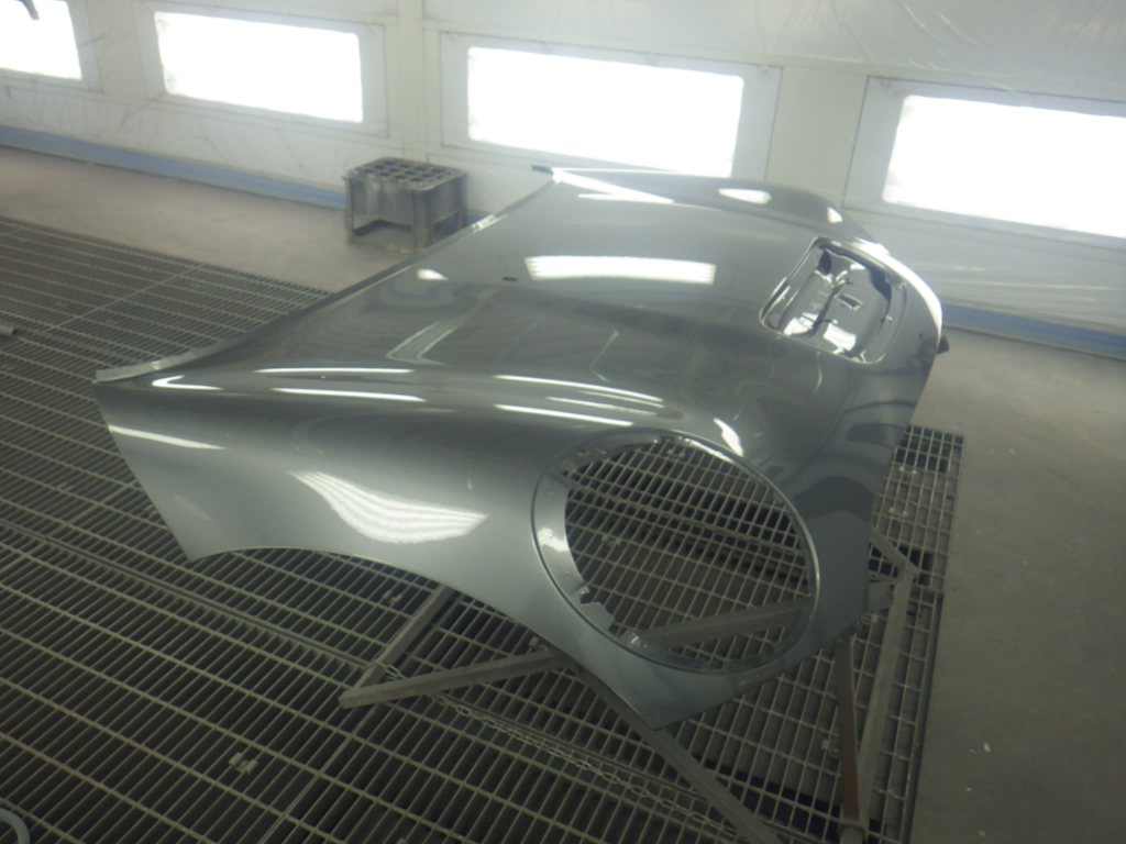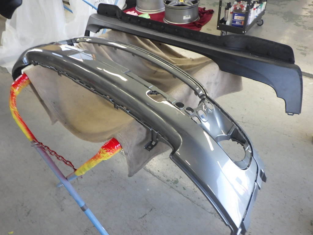 ベースコート(ガンメタ)、トップコート(クリヤー)の順に塗装作業を行いました。