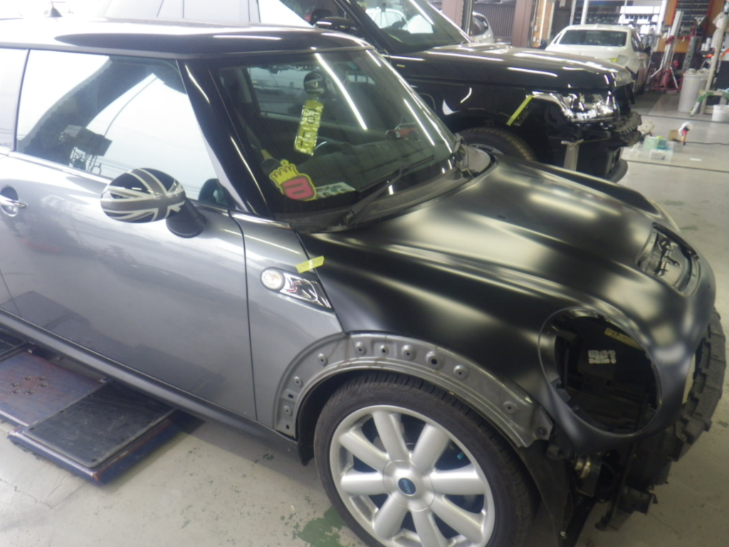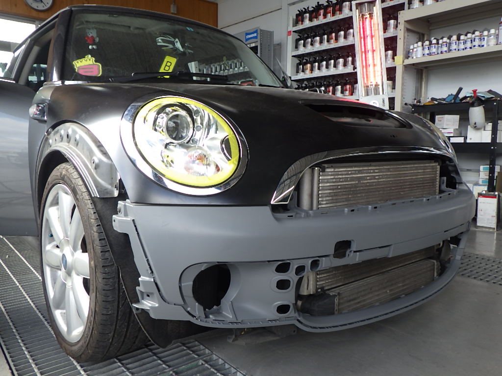 兵庫県神戸市のA様 BMW MINI クーパーS R56 フロント回り修正のレポートです。