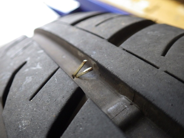 タイヤに金属片が刺さっていましたがエア漏れはありませんでした。