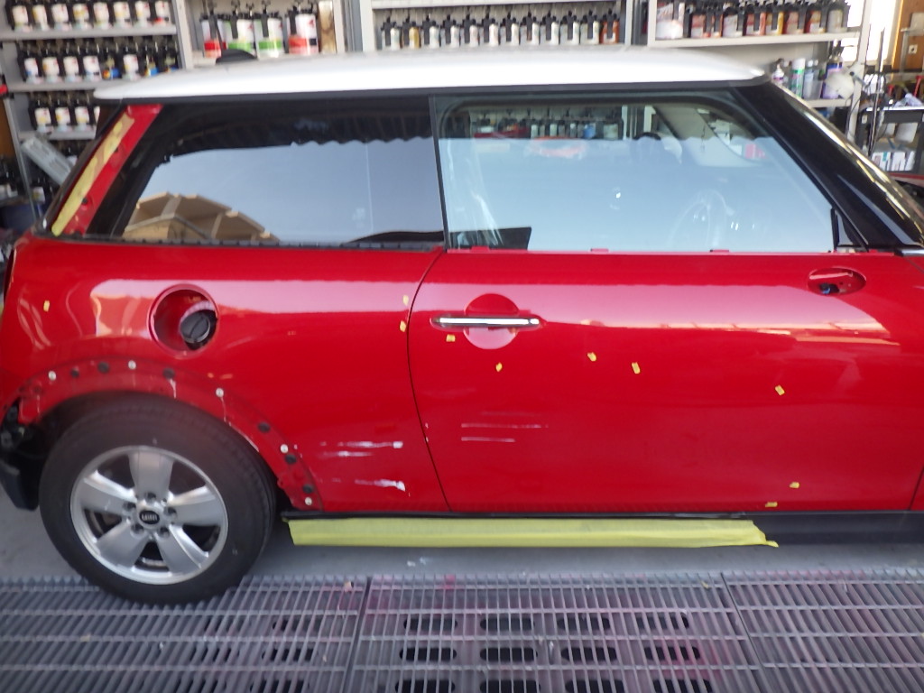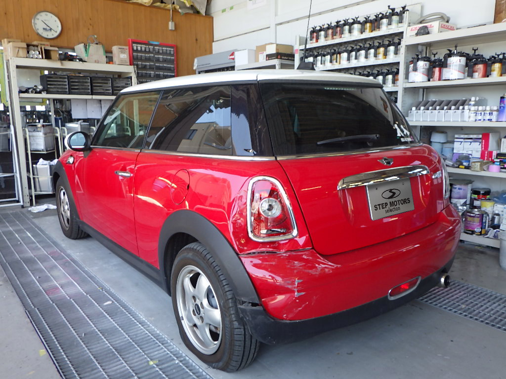 【鈑金塗装】【事故】兵庫県神戸市、I様、2008y、MINI、R56、フロントバンパーボンネット損傷へこみ修理レポートです!ありがとうございました。