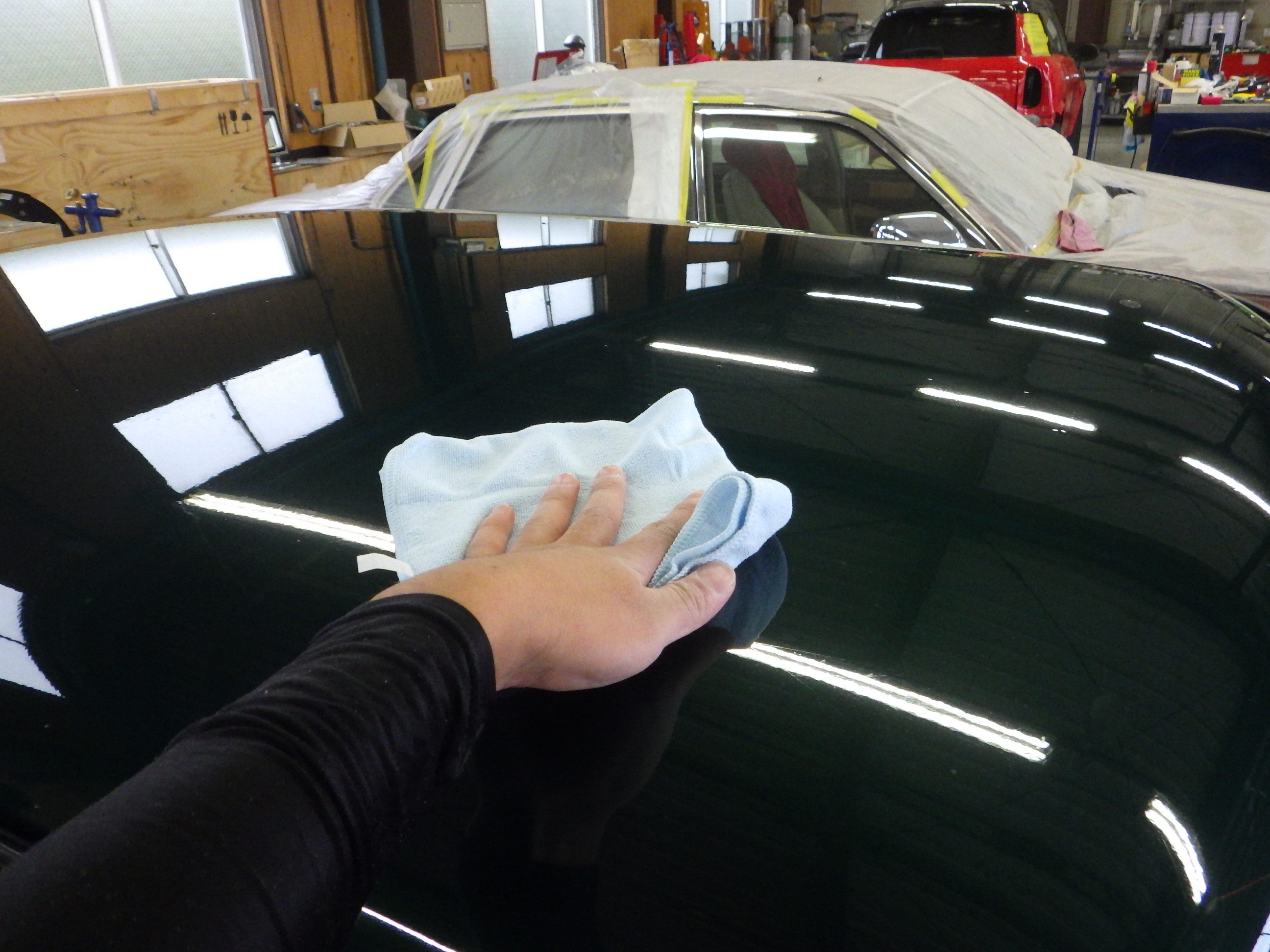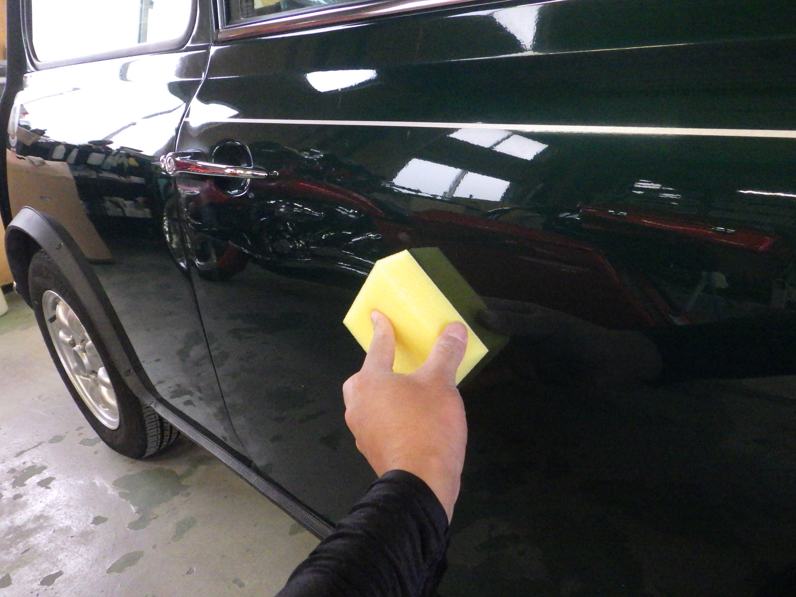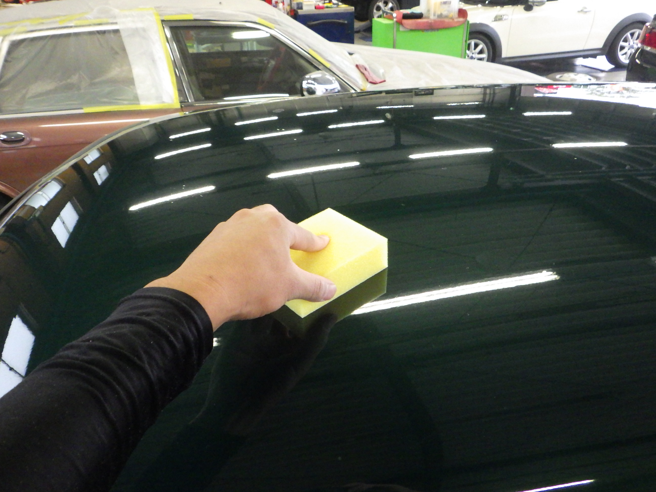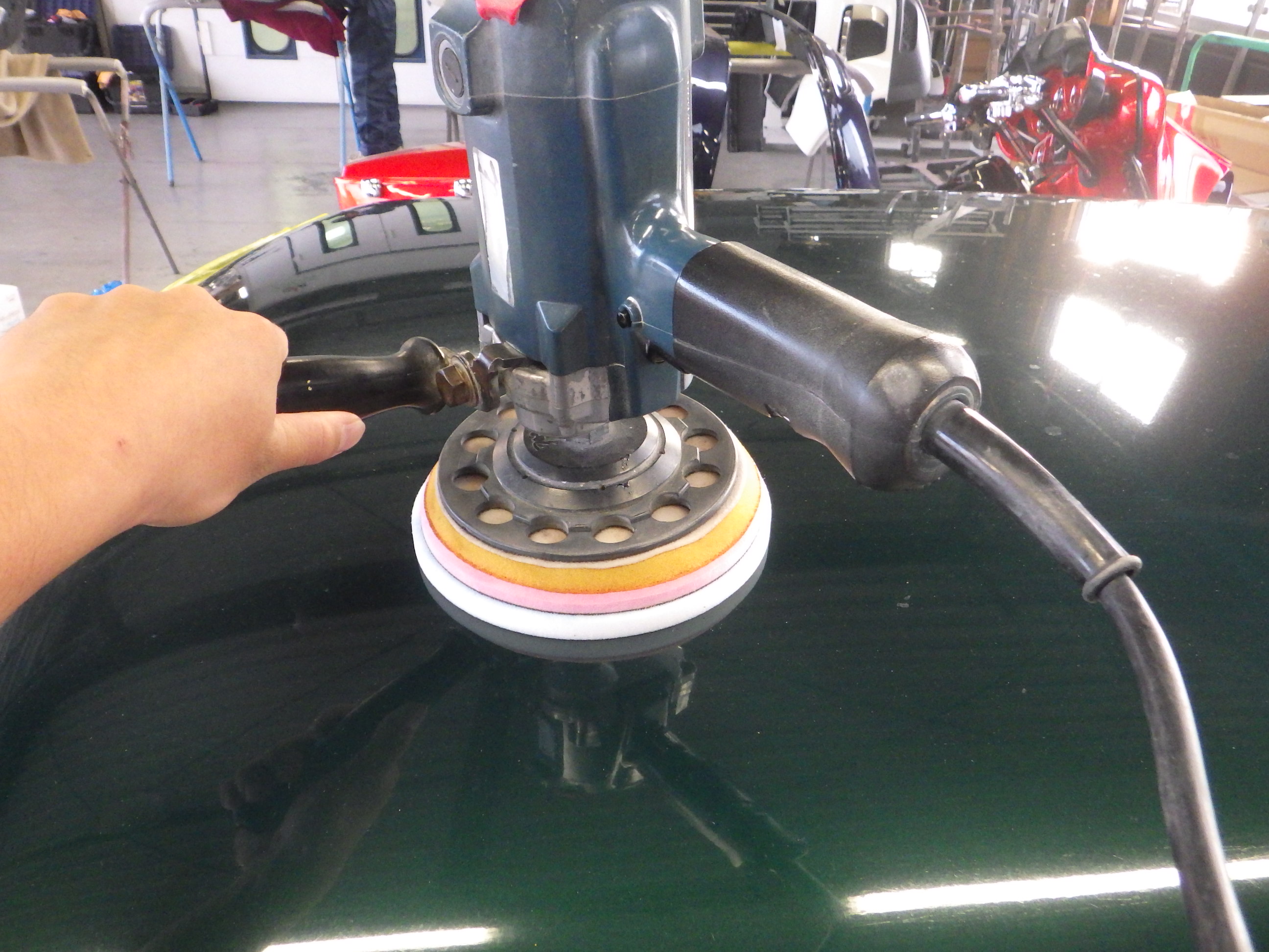 マスキング作業の後、ポリッシャーを使用し磨き作業を行いました。