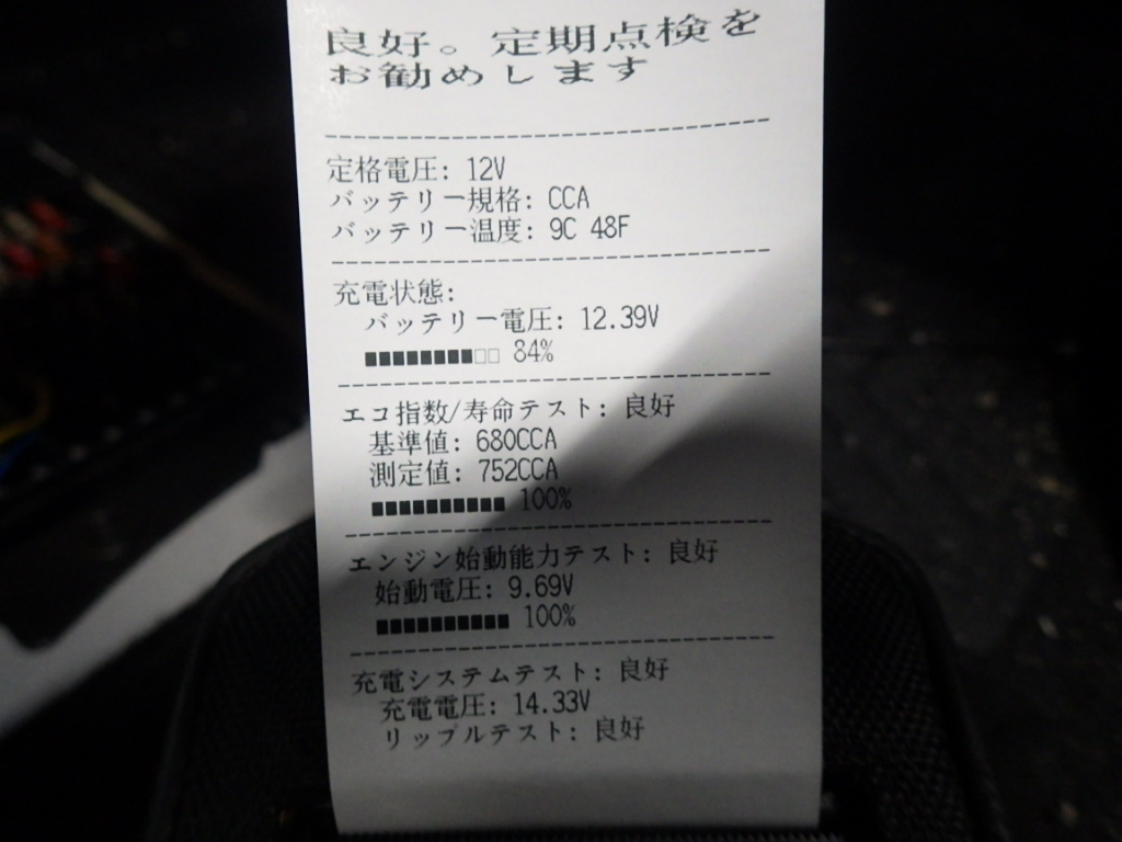 バッテリーはテスターにて診断しましたが異常ありませんでした。
