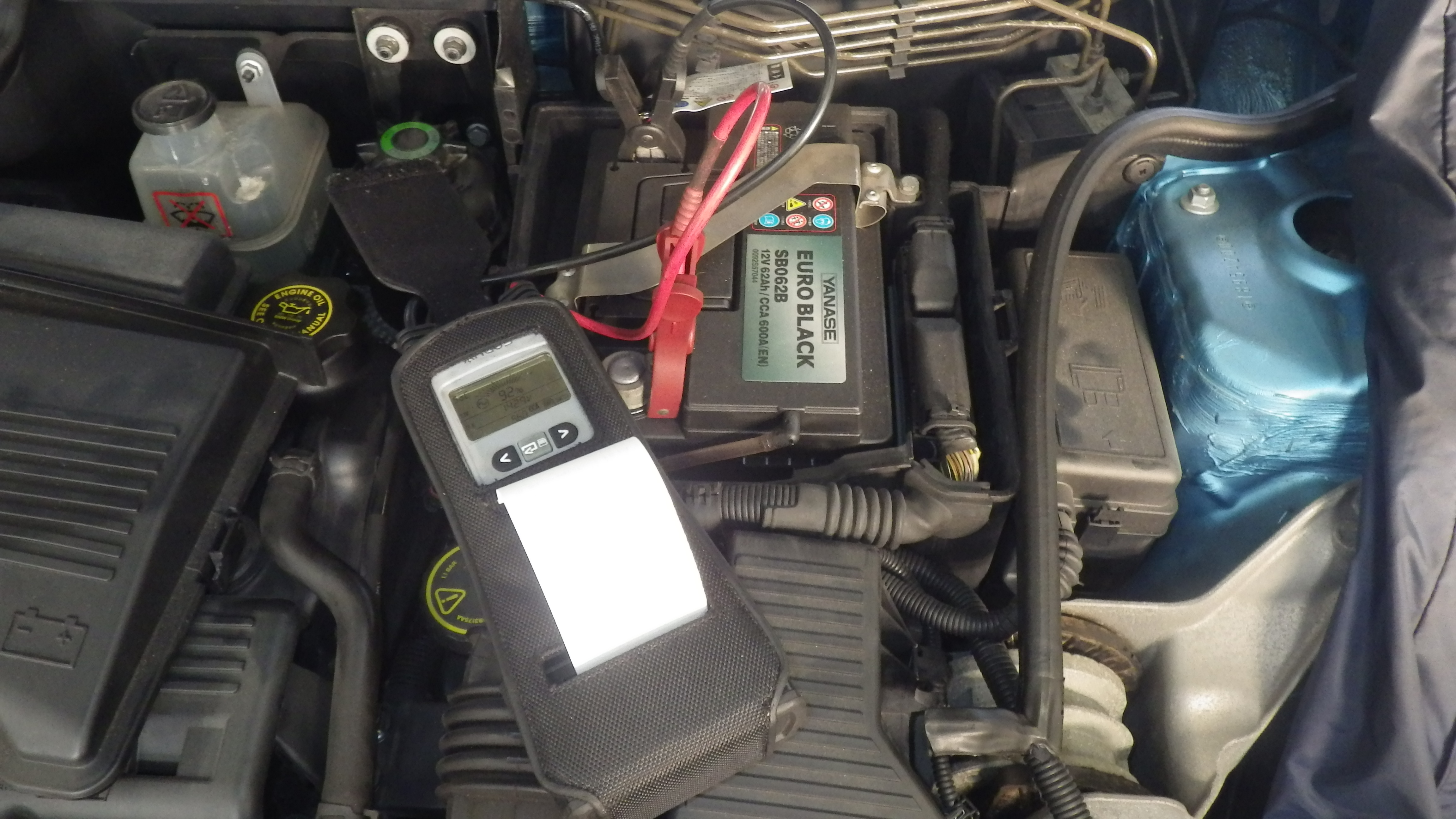 テスターにてバッテリーの点検を実施しています。