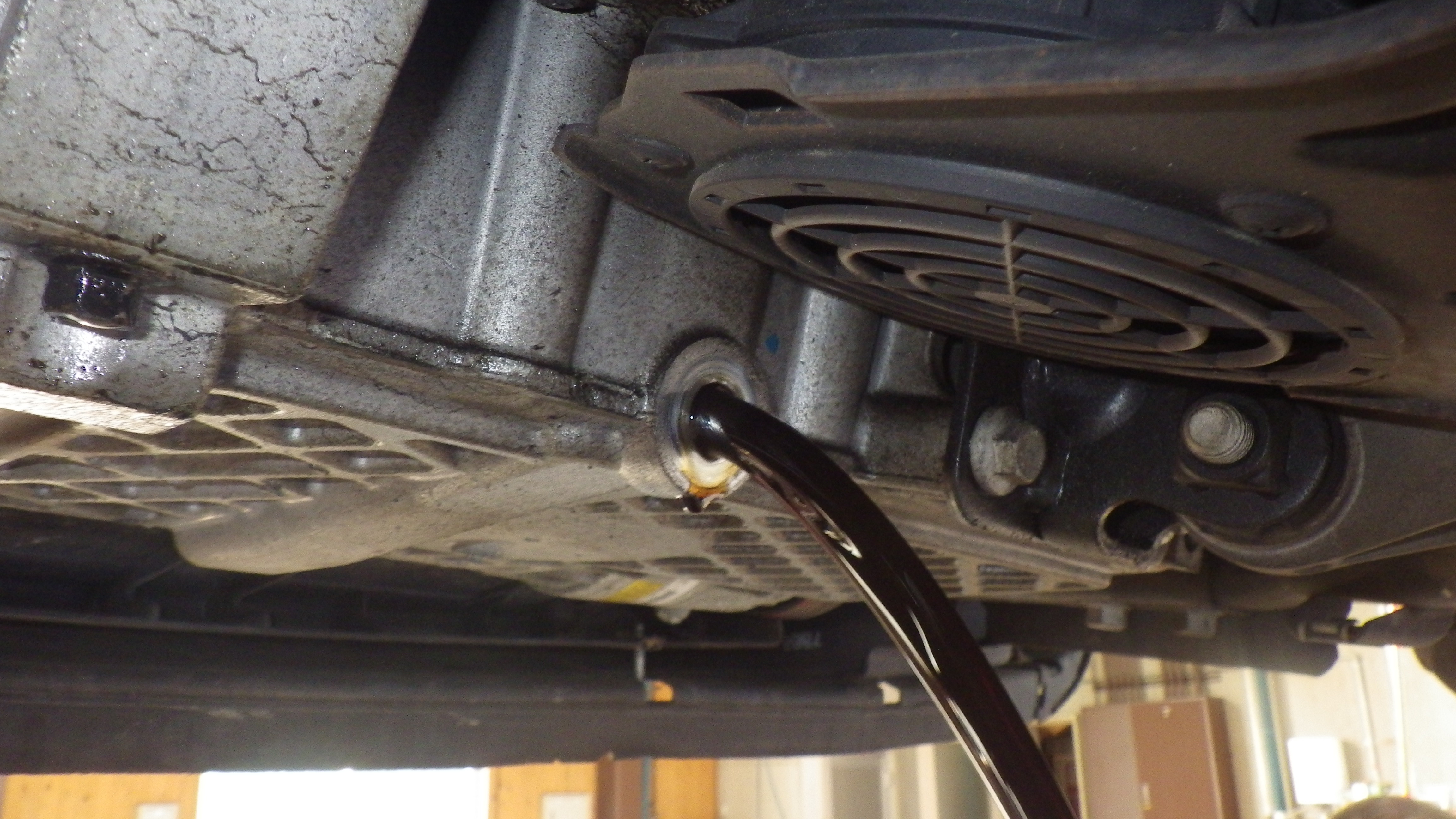 写真はエンジンオイルパン取付部よりの漏れです。