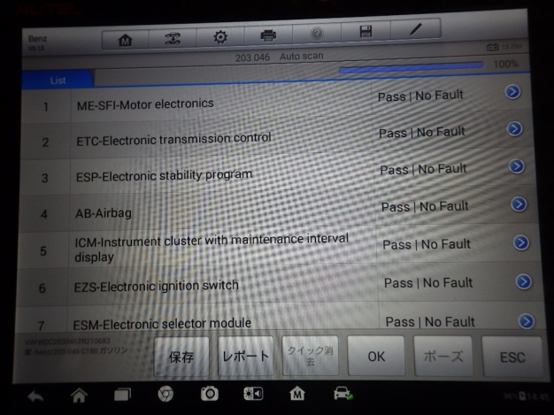 テスターにて各制御系統の診断を行いましたが異常ありませんでした。