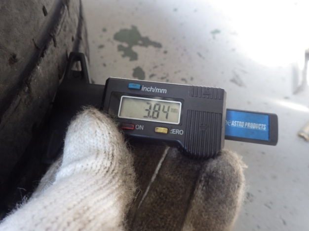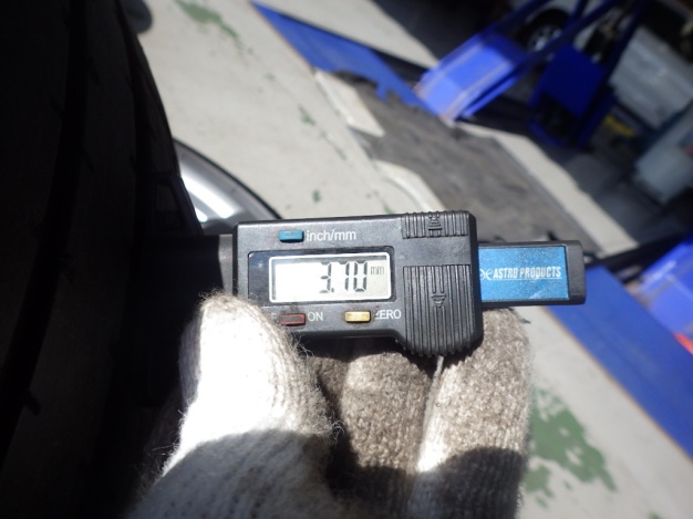 タイヤは偏摩耗等なく、前後共にタイヤの残り溝が少なくなっていますので早めの交換をお薦めします。