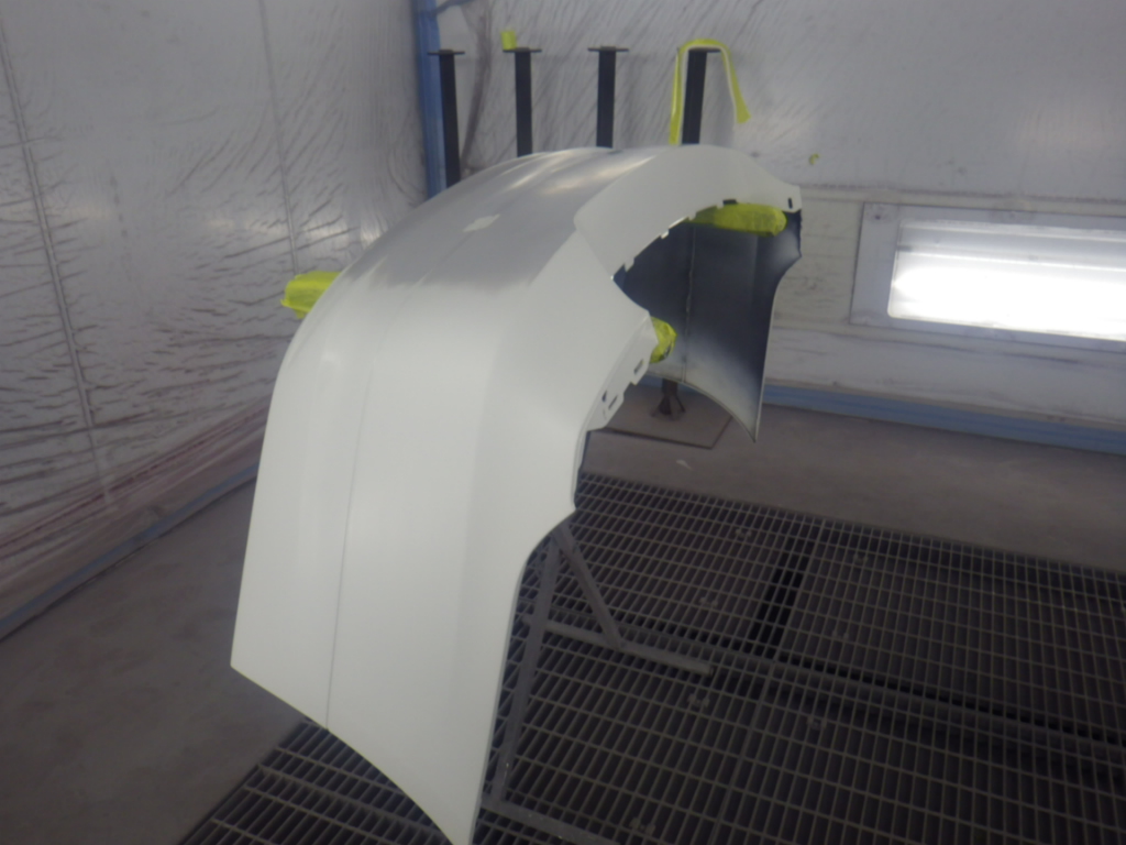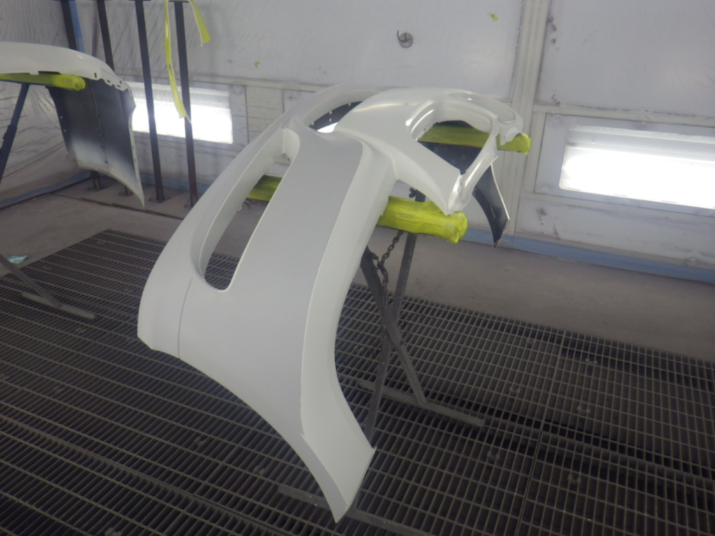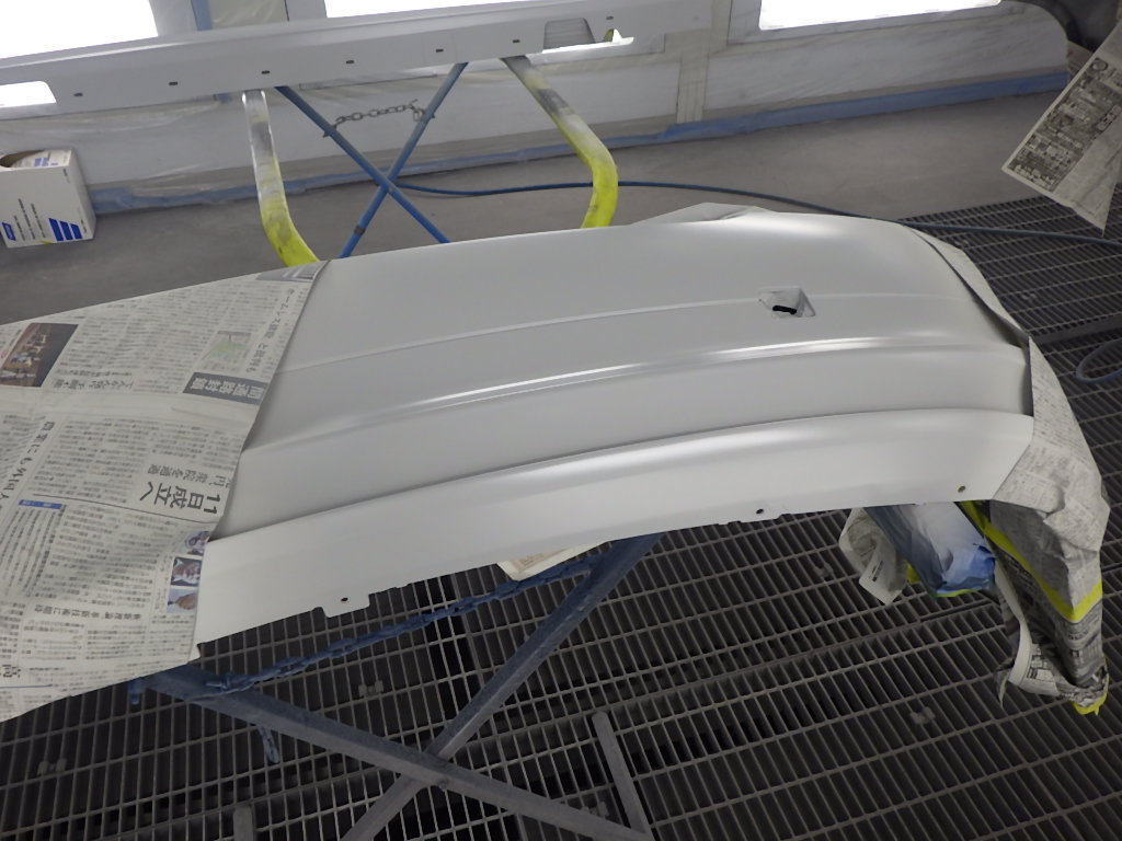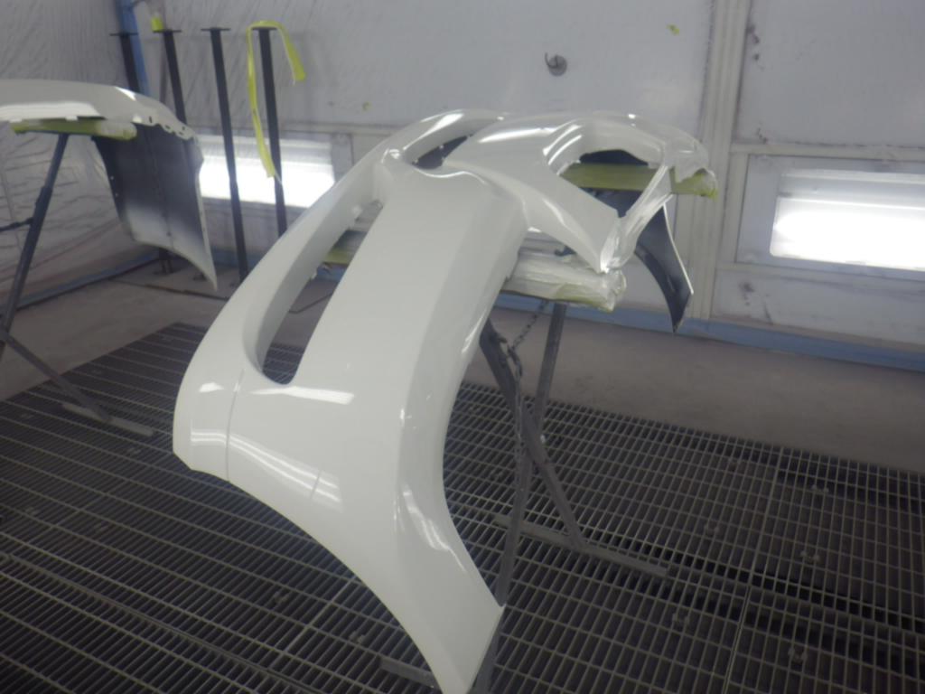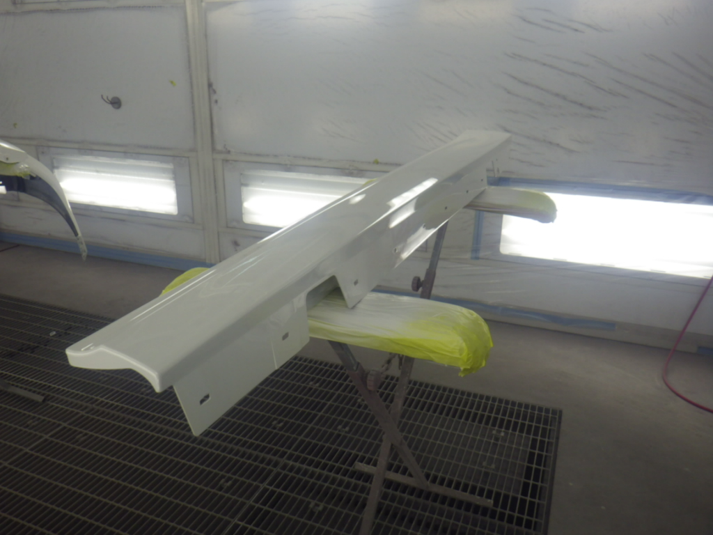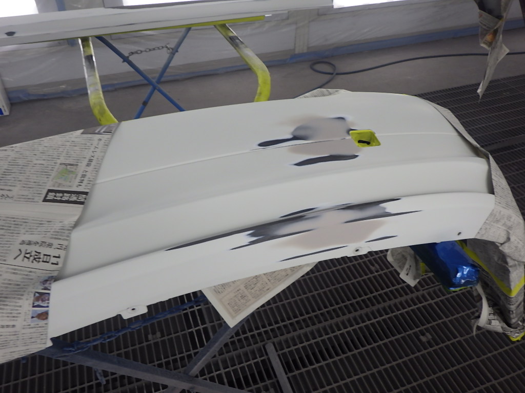 ベースコート(白)、トップコート(クリヤー)の順に塗装作業を行いました。
