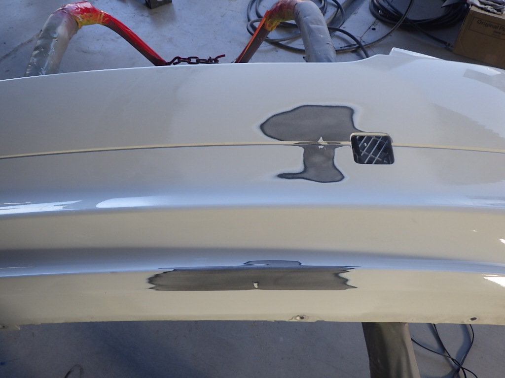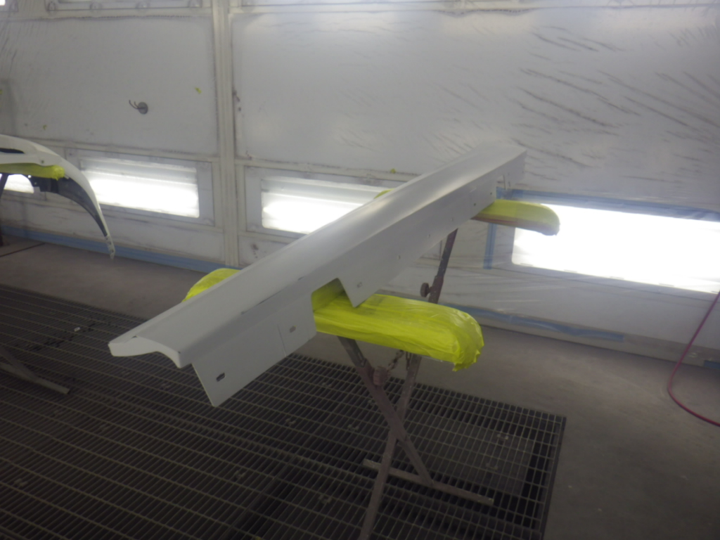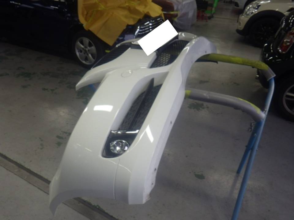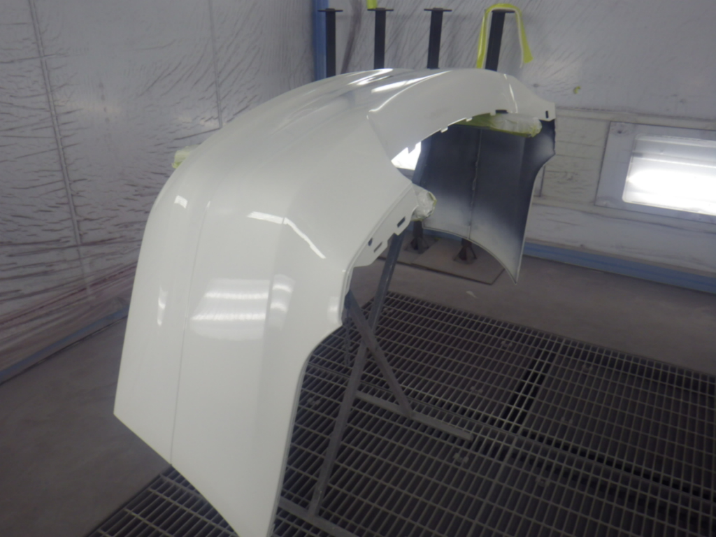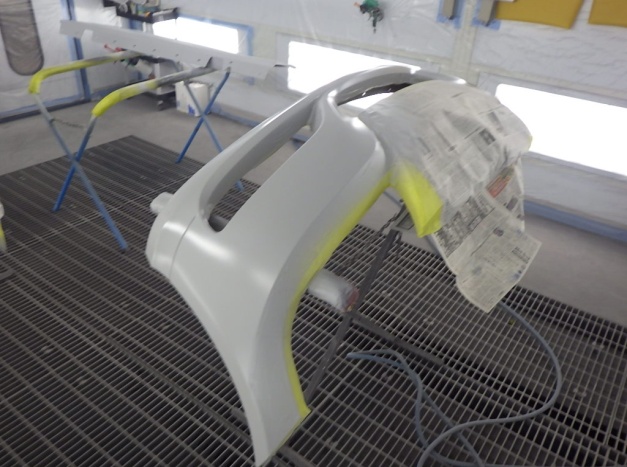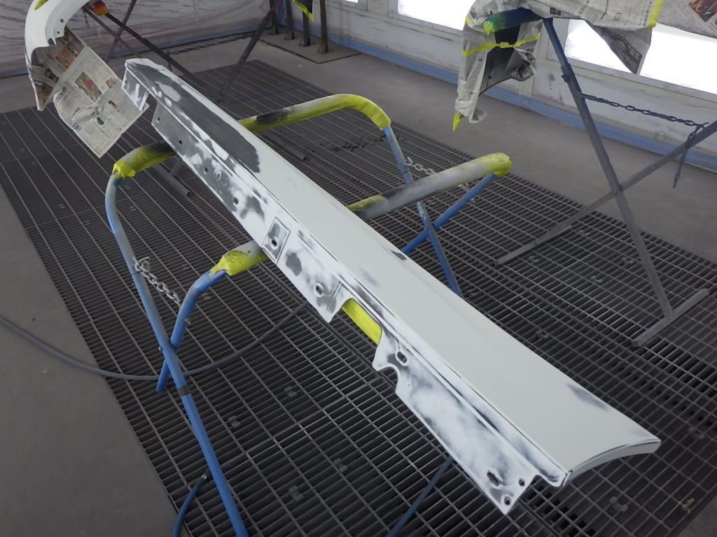 ベースコート(白)、トップコート(クリヤー)の順に塗装作業を行いました。