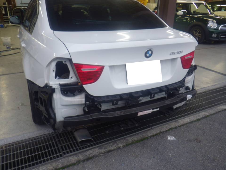 兵庫県明石市のY様 2007年BMW 320iツーリング E90フロントバンパー、サイドステップ、リアバンパー修理のレポートです。